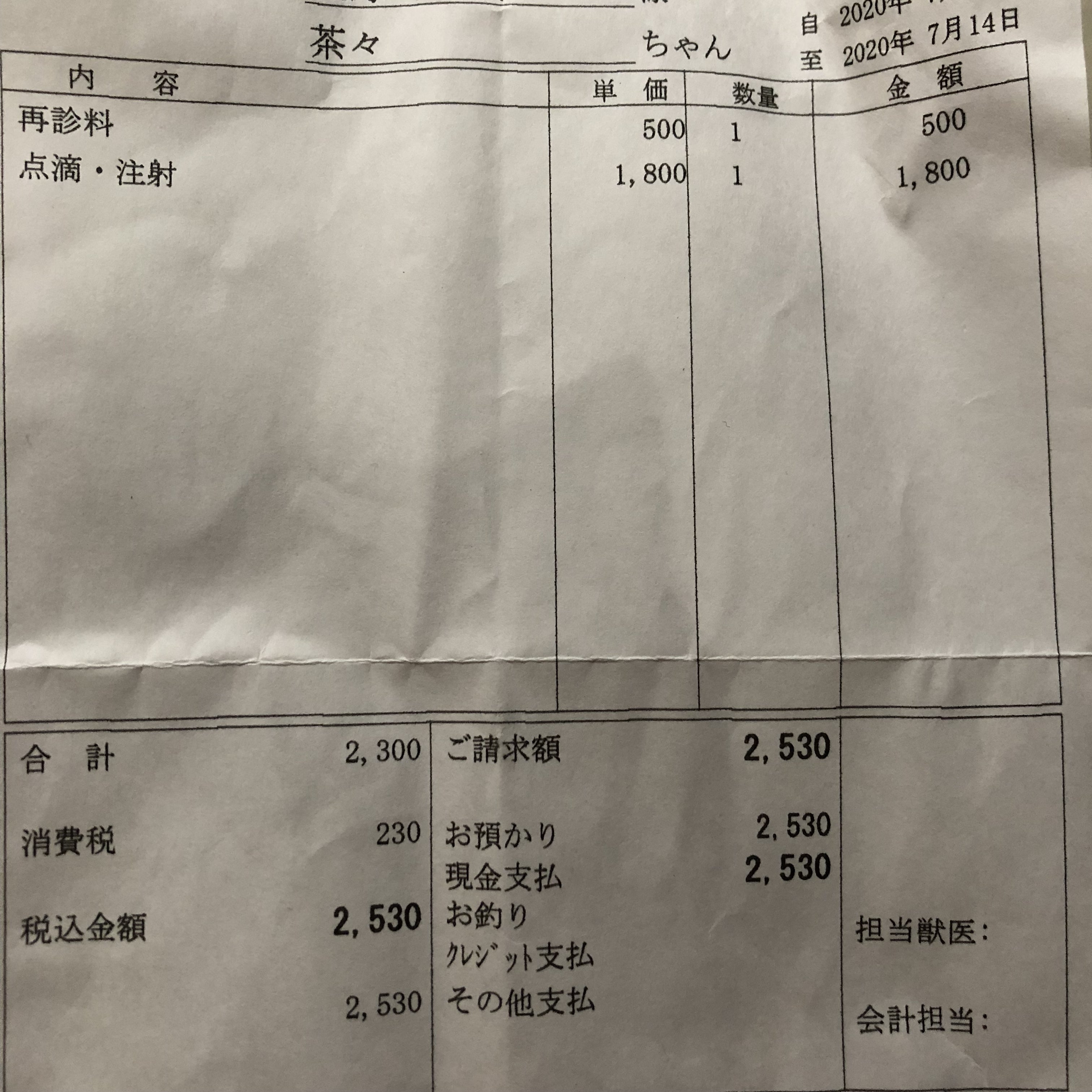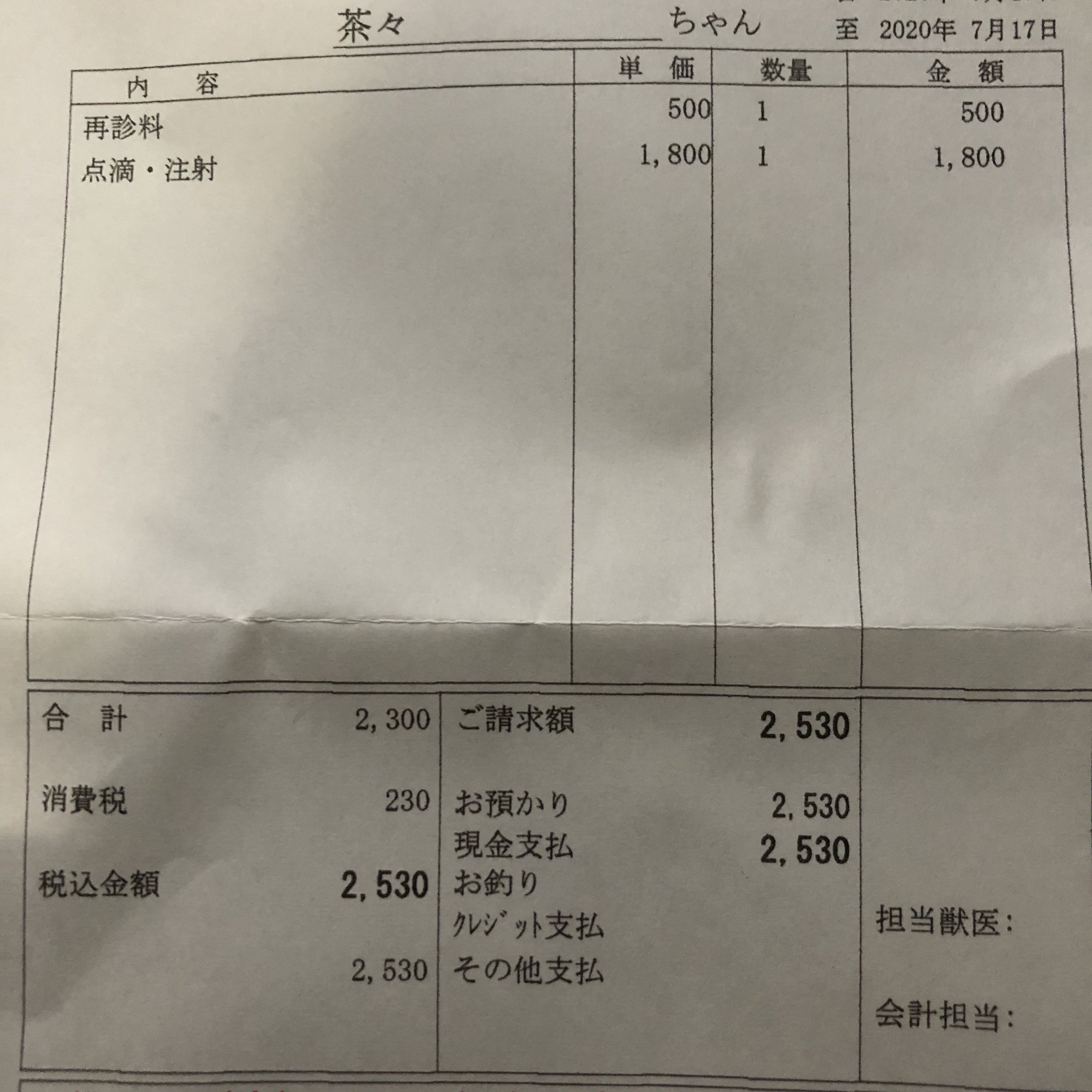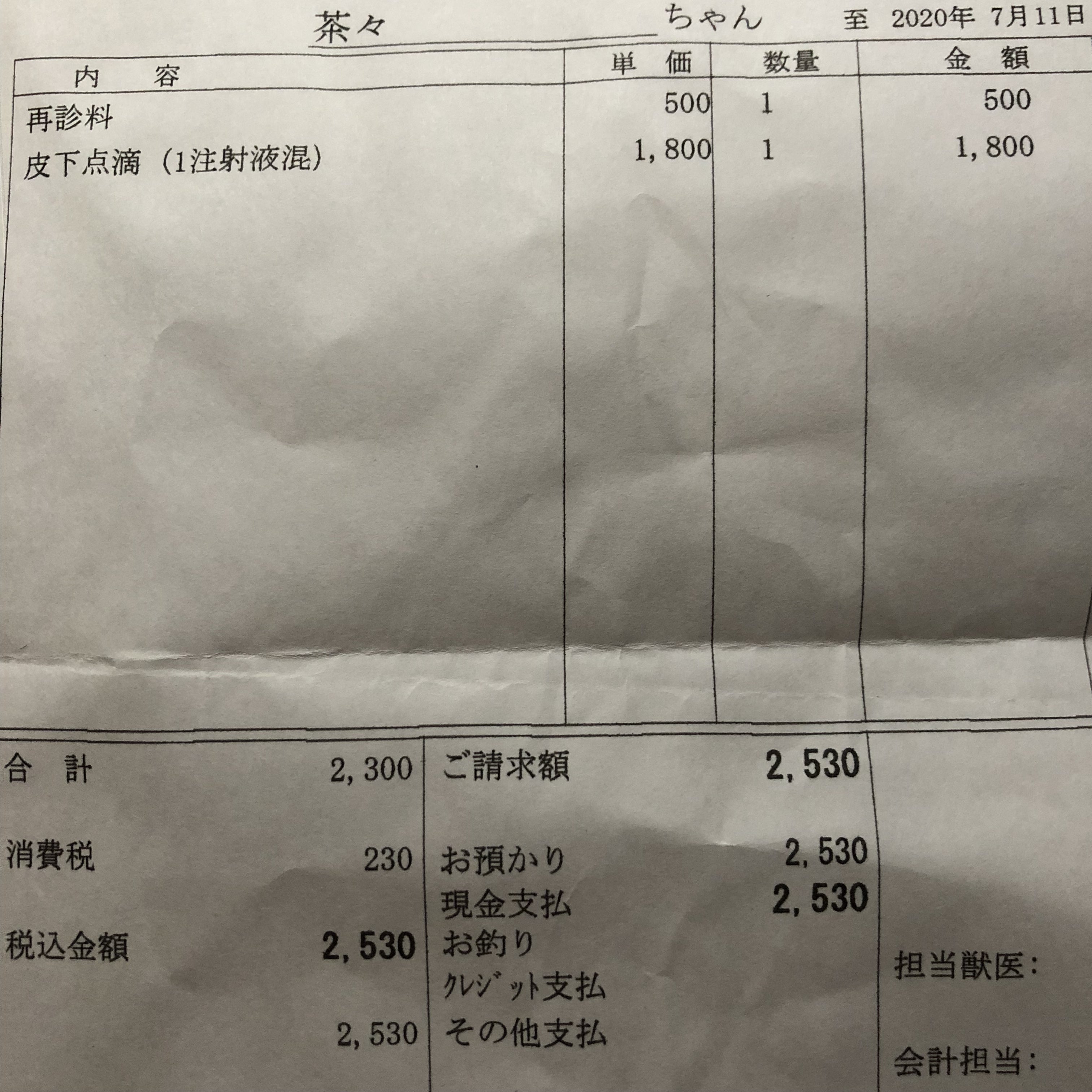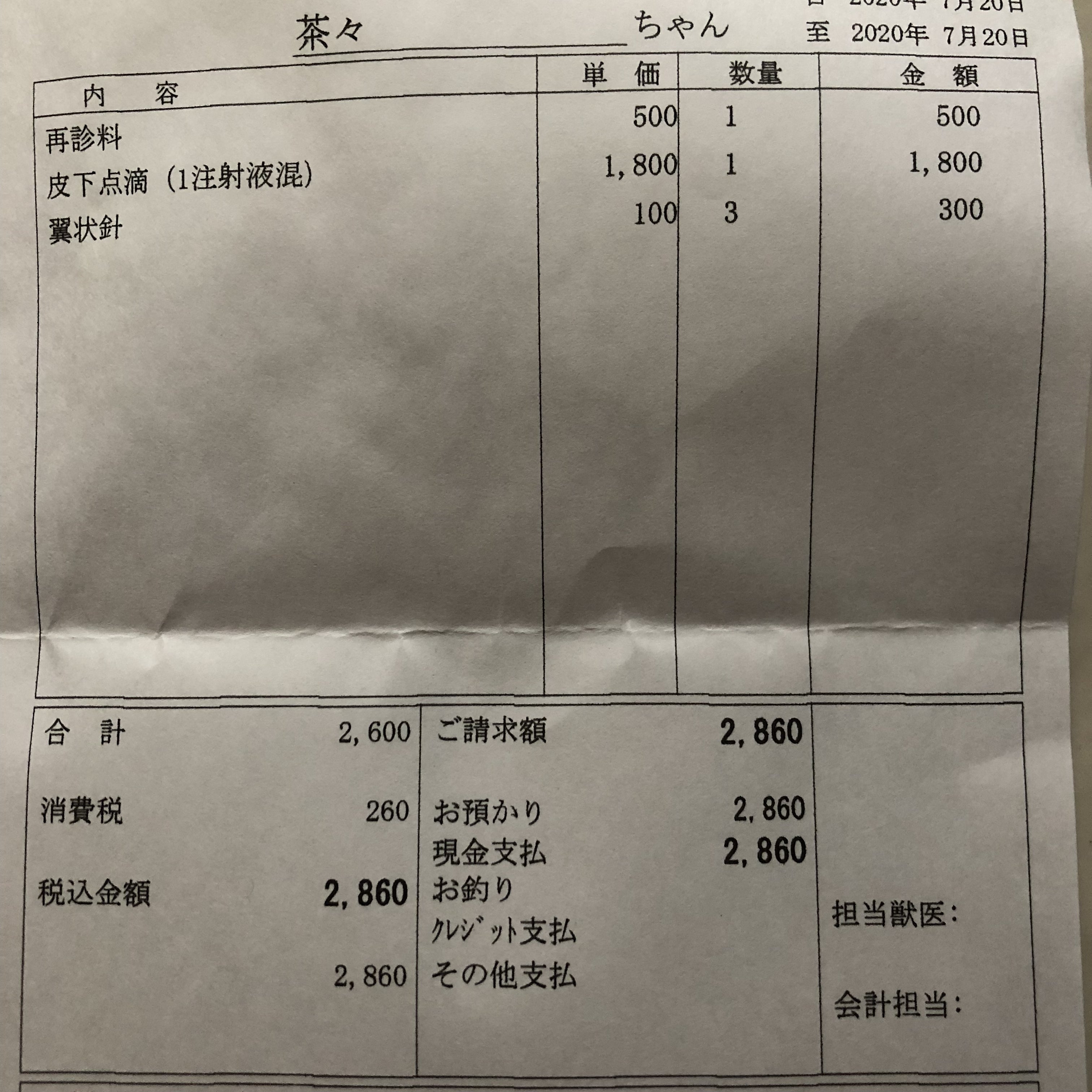 病院の明細書を貼り付けておきます