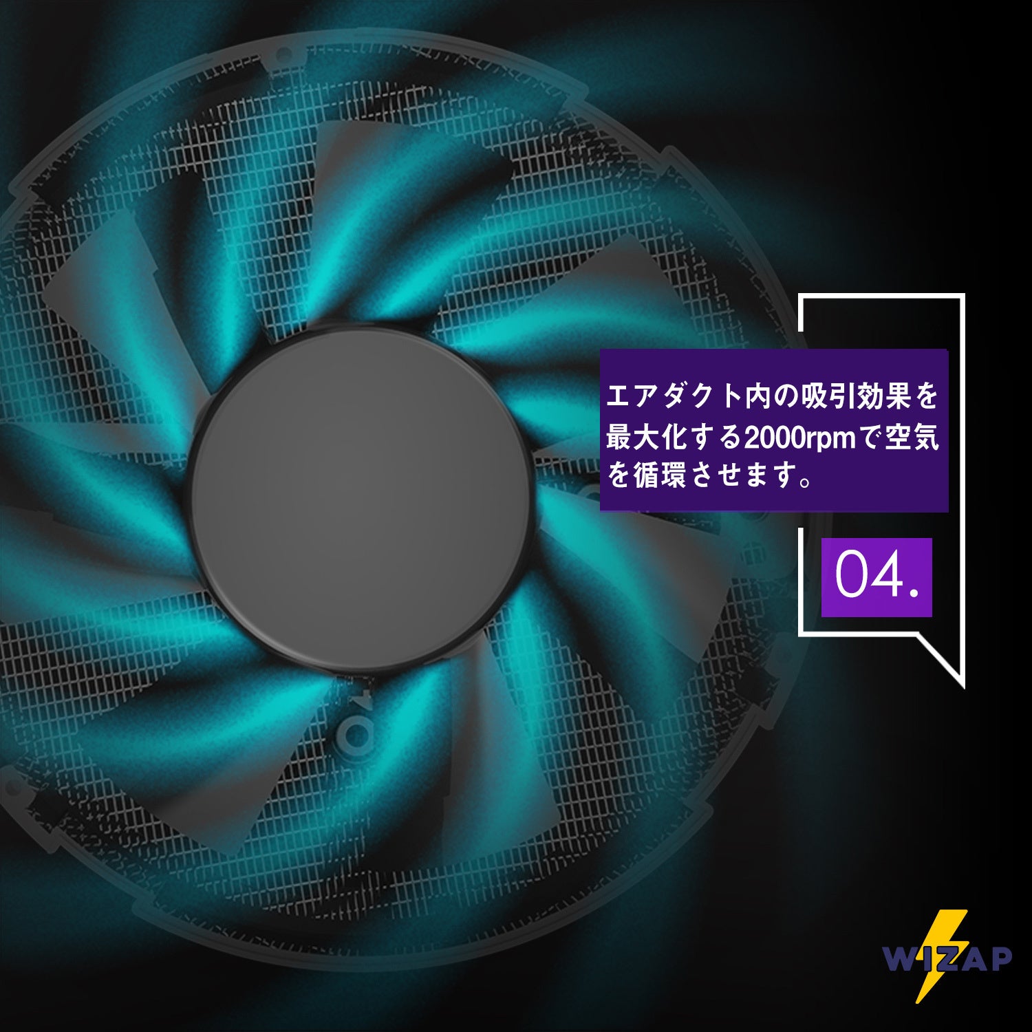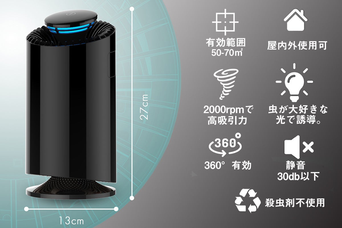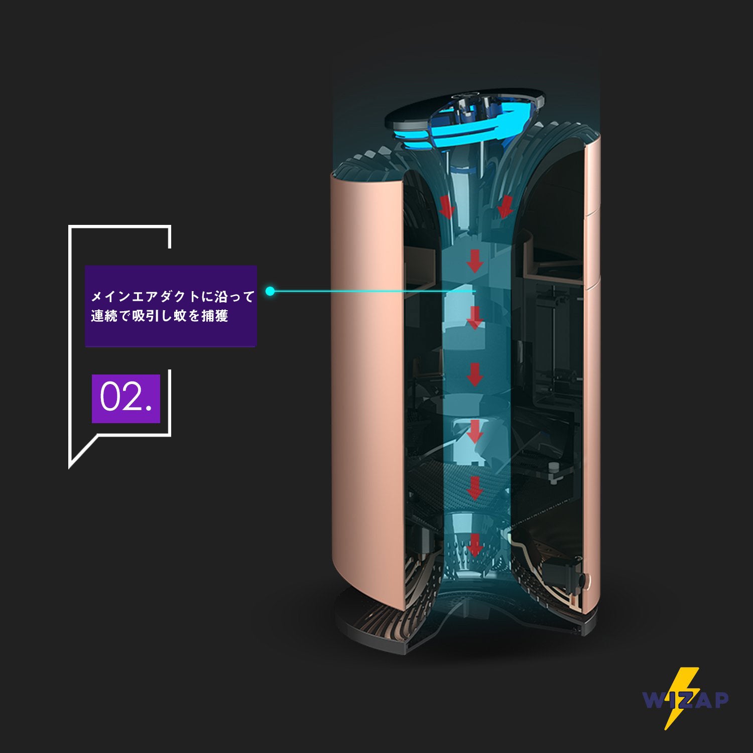 Wizap ™は、2000Rpmの高速ファンのおかげで優れた吸引力を発揮し、60m²以内の蚊や他の昆虫に有効です。吸引は360°全方位で機能します。より効率的で実用的です。