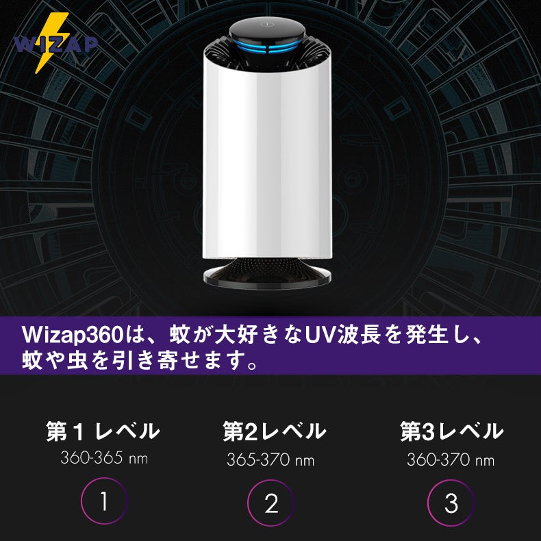 Wizap™360は、蚊の3つの致命的な波長を発生します。
