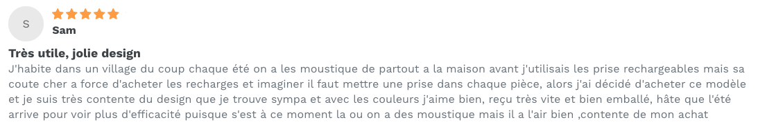 毎年、夏に田舎に住んでいます。どこでも蚊がいます。蚊取り線香を各部屋ごとに購入し毎日交換することを考えたらコストがかかるのでこのモデルを購入することにしました。素敵なデザインと好きな色を使い、非常に迅速に届き、パッケージも充実しています。