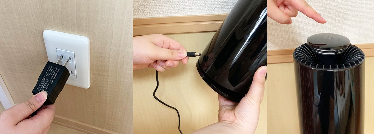 ・上部のスイッチボタンにタッチすると上部の2つのチューブライトが発光しファンが回転を始めます。