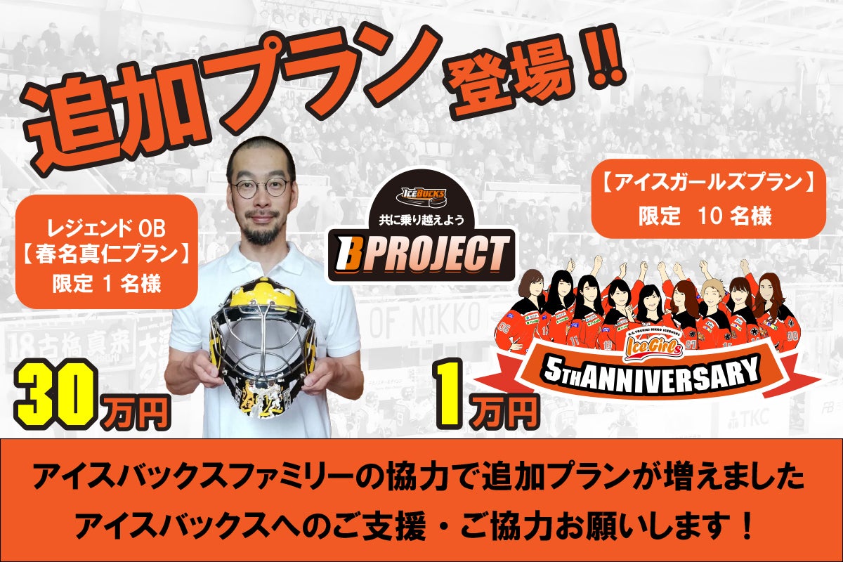 このプロジェクトで集められた資金は、ファンの皆様に安心して応援していただける対策費用にあて、新シーズンの霧降アイスアリーナでの感動や喜びを分かち合えるよう前進するために大切に使わせていただきます。