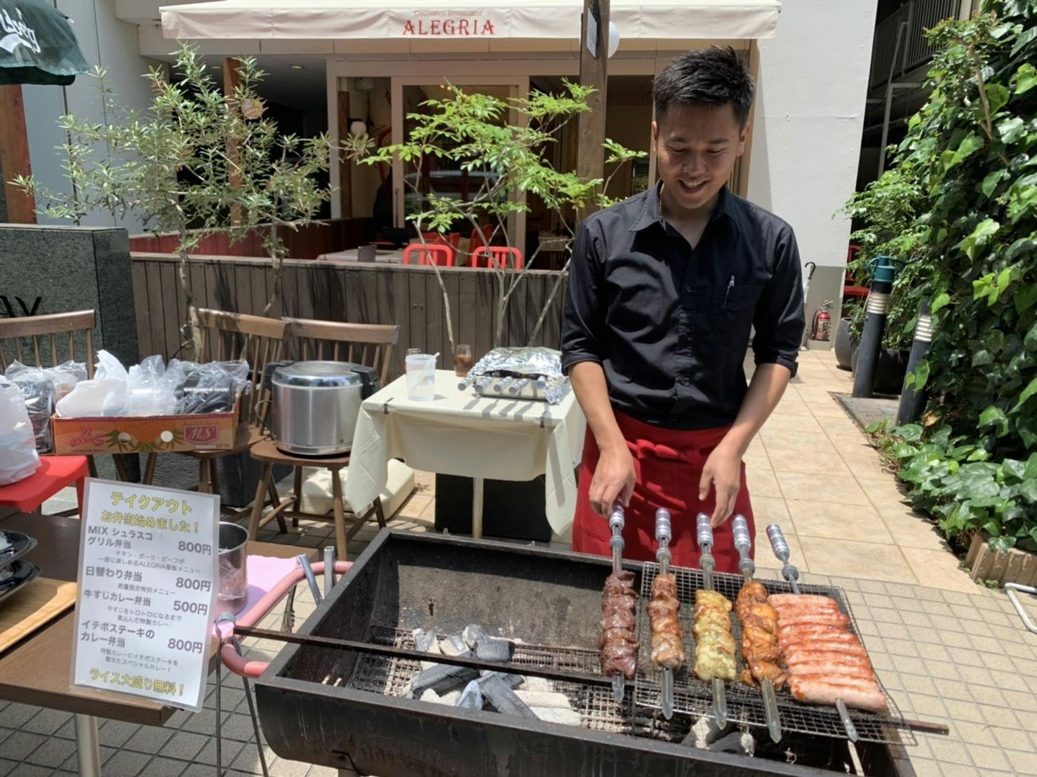 渋谷店はテラスがあるので店内はもちろん外でもシュラスコを焼いてます!