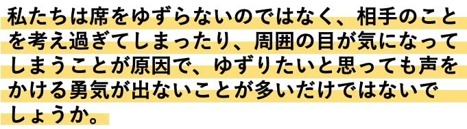 「日本人は席をゆずらない」と表現されることがありますが、私たちの考えは違います。