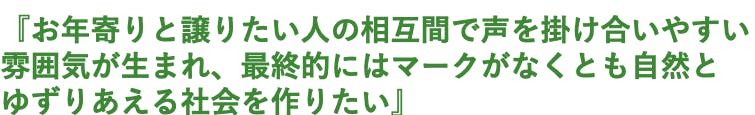 この経験から、席を必要としている高齢者を判別できるようにすることで、席をゆずろうか迷っている方の背中を押したいと思い、このマークの製作に踏み切りました!