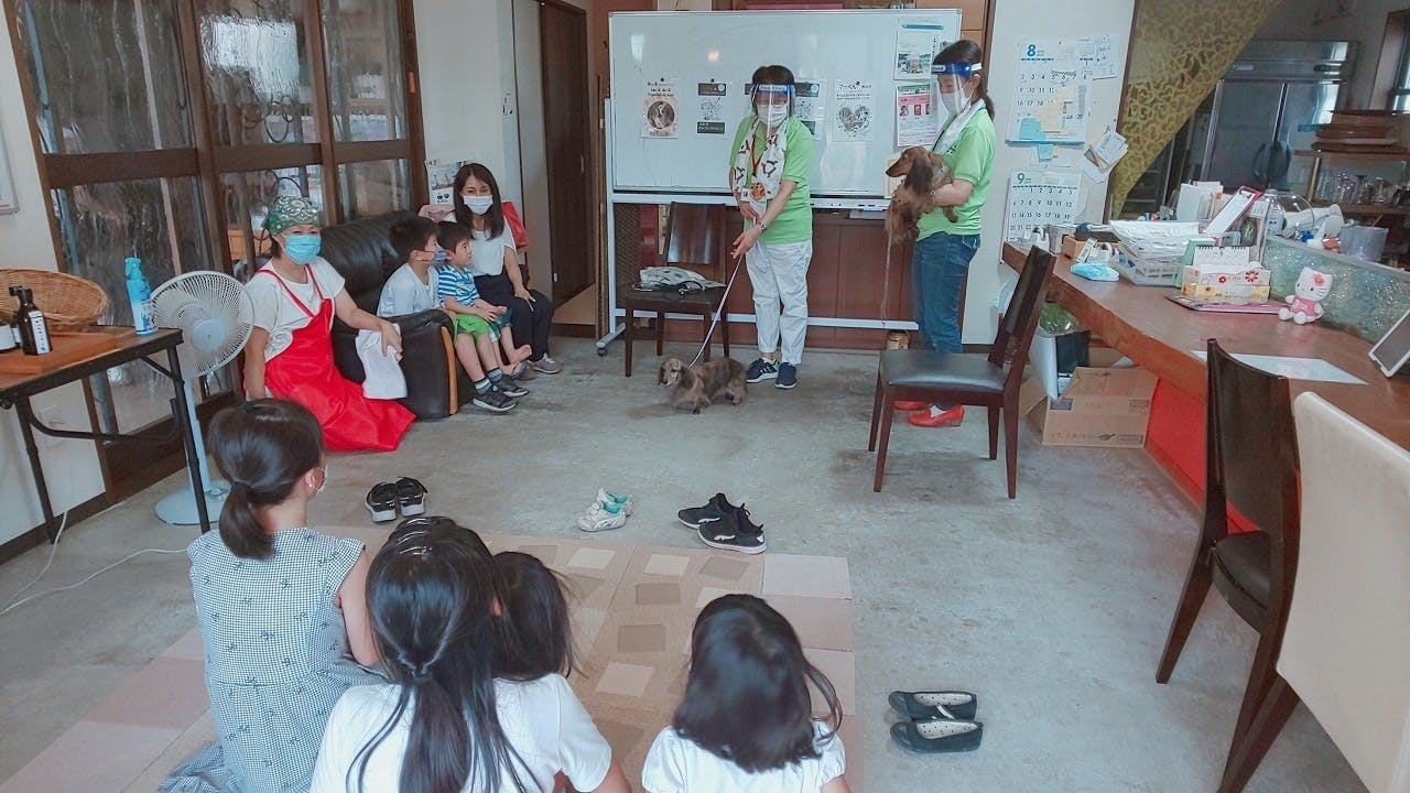 「犬が苦手だったのが、優しい犬に触れて好きになったようです」「犬に優しいあいさつをご近所のワンちゃんにしました」「動物にも命や気持ちがあるから、考えてあげると言っていました」「フリスビーを上手に取って持ってくるんだよ!と興奮して話してくれた」など保護者アンケートでもご好評いただいています。