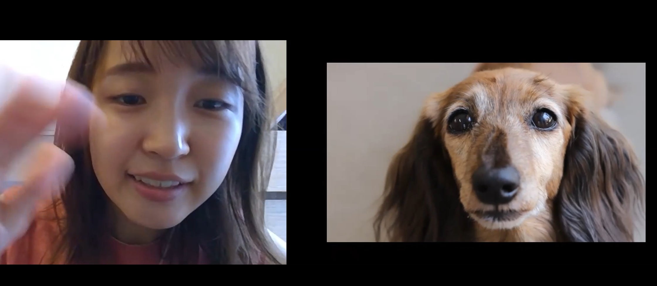 じっとこちらを見つめる犬に思わず手をふる(zoom利用場面)