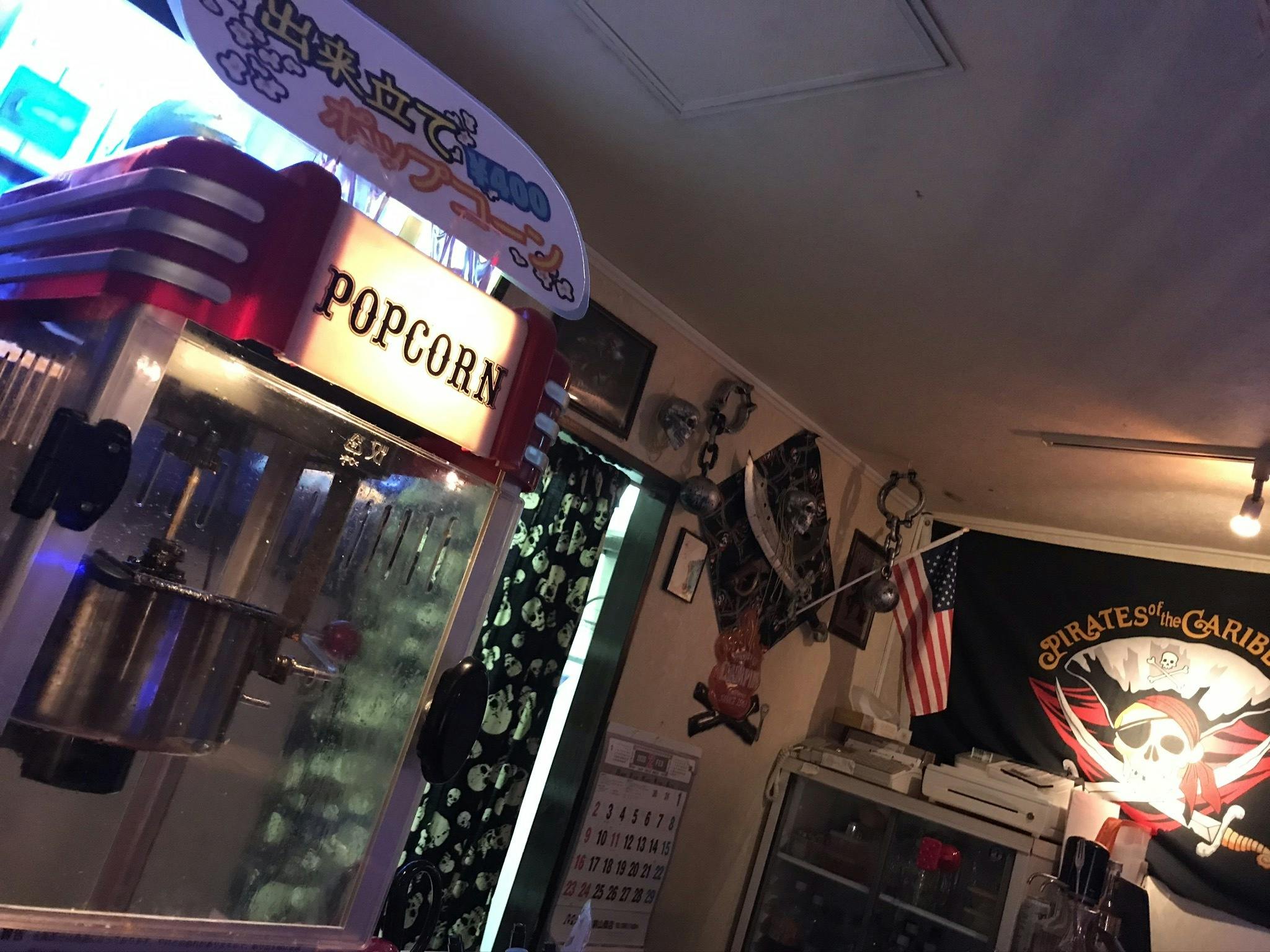 カウンターにはポップコーンが作れるマシンが置かれ、できたてのポップコーンが注文できる。スパイスも数種類から選べるのがいい。