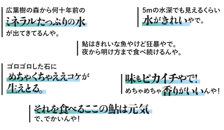飛騨宮川下流鮎の魅力を、名人の言葉を借りてお伝えします。