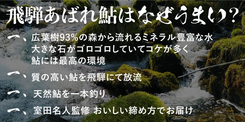 日本中の皆様!是非、飛騨あばれ鮎の魅力を、味わって知ってください。そして、是非現地の鮎釣りにも来てくださいね!