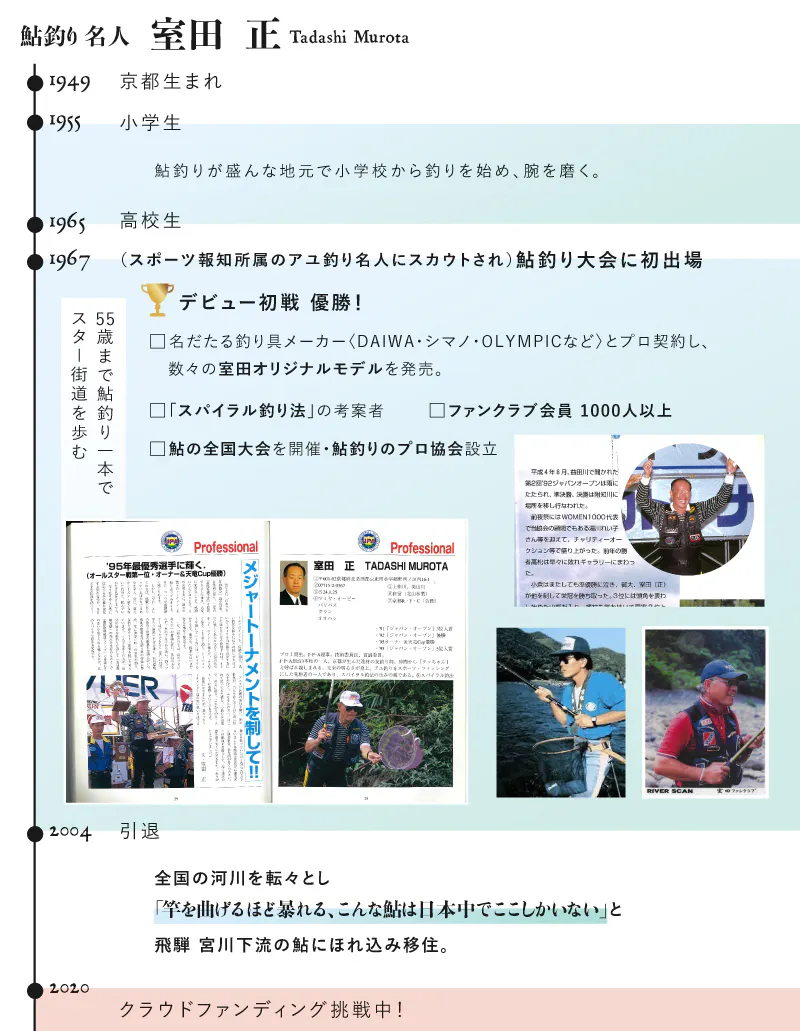 このプロジェクトは、鮎釣り界のレジェンド・室田正名人との衝撃的な出会いから始まりました。