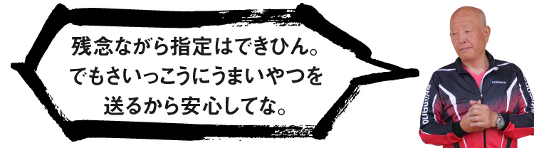 ⇒日の指定はできませんが、時間指定は可能です。また、ご不在などでお受け取りが難しい日時がございましたら、ご支援の際に入力ください。