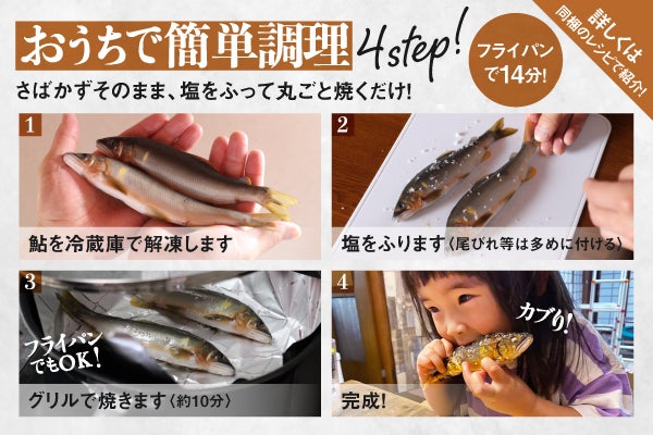 また、お魚の調理は、処理が大変と思われている方も多いのでは?鮎はまるごと塩を振って焼くだけです!
