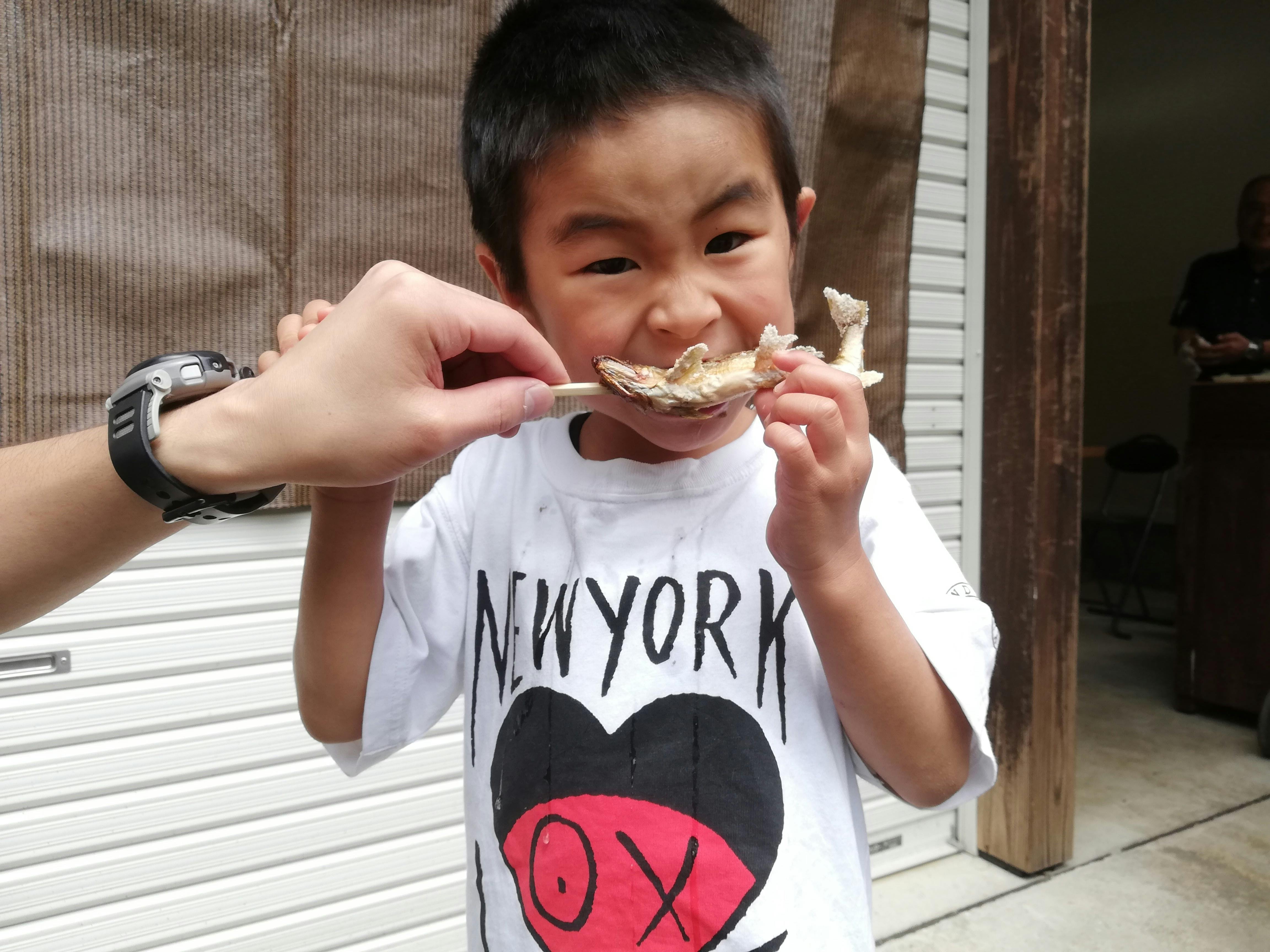 釣ってすぐには食べられないため、昨年の冷凍鮎を塩焼きにしたものですが、それでもふわっとした身で美味しいんです!尻尾やヒレは塩辛いのですが、そこ以外は頭から骨までまるっといけちゃいました◎