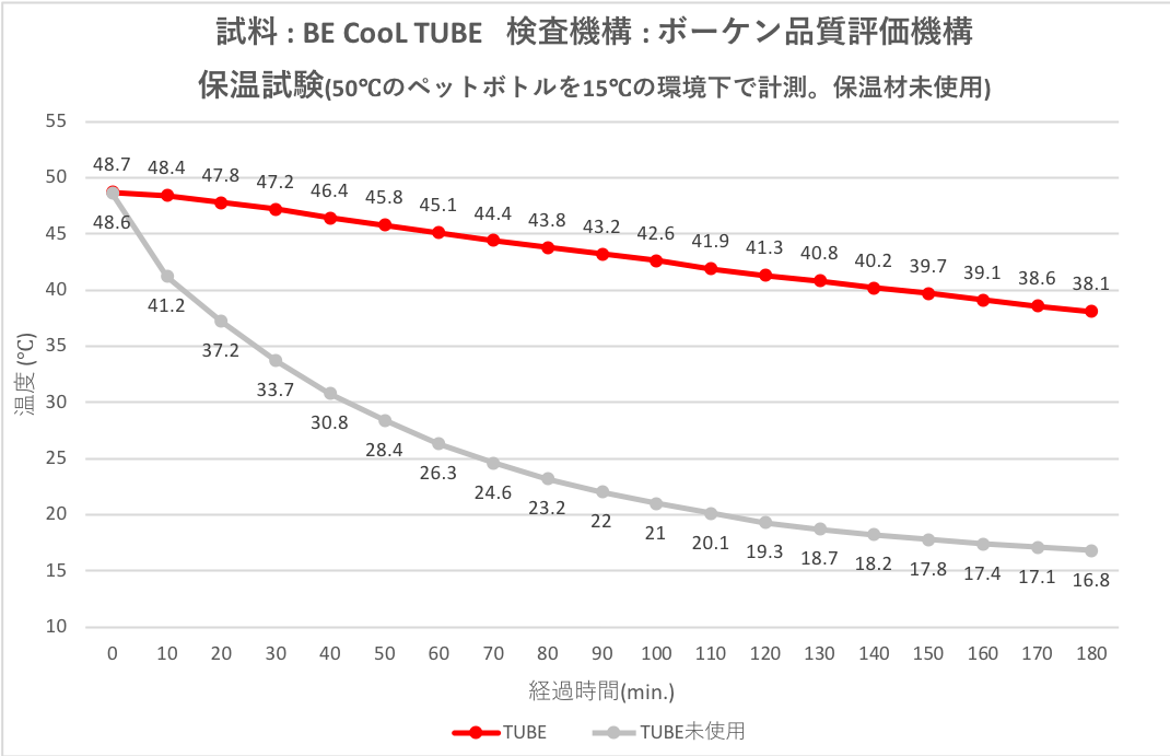 グラフの通りBE CooL TUBEに入れたペットボトルは、