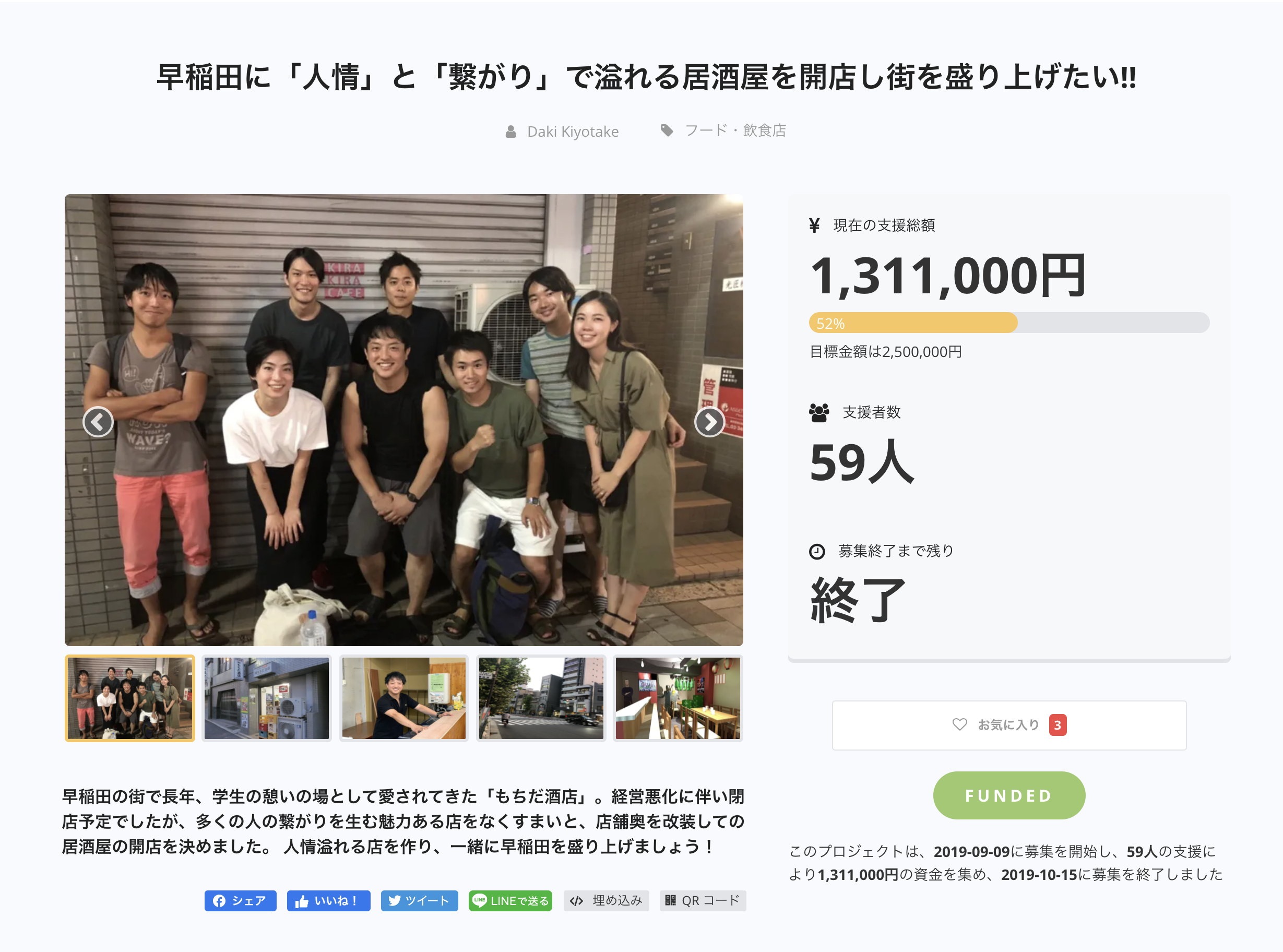 2019年の9月ごろに行ったこちらのクラウドファンディングの際、たくさんの方からご支援をいただき、2019年10月にお店をOPENをしてから、早稲田の地にゆかりがある方を中心に、人情味溢れる優しい多くのお客様にご来店いただき世代を超えた繋がりができる場所として楽しく営業してまいりました。
