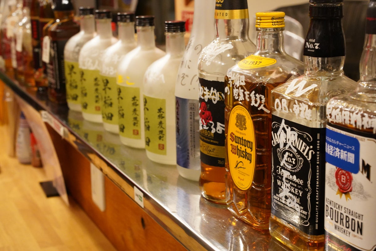 学生街の賑わいを見守ってきた酒屋の風情をそのままに、清酒コンテナや酒瓶を活用したインテリアも店のチャームポイントだと思います。