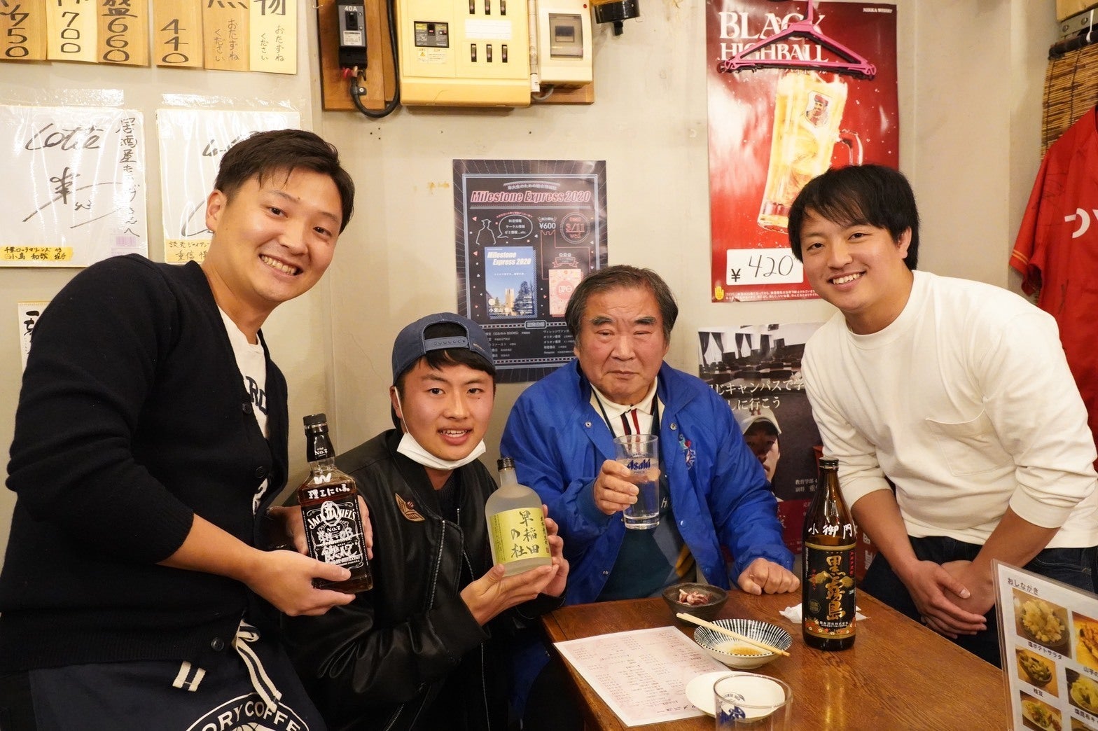 自分が学生時代、先輩方にお世話になったOBOGや大人の方々が現役学生に同じようにお酒を奢ってあげるこの仕組み。脈々と受け継がれる時代の歴史をひとつの「ボトル」で紡いでいく。