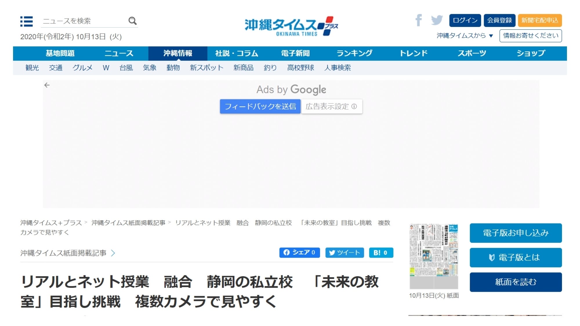 沖縄タイムス記事はこちらです。(冒頭のみです)