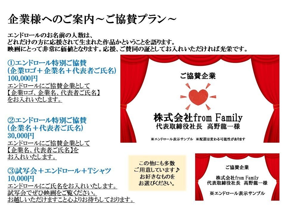 【企業様・個人事業主様向け協賛リターン】を追加致します。