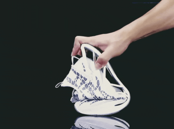 アッパー表面に施されている紋様は、昼間は静かな海面、夜は光の反射で波模様を浮かび上がらせ、サーフボードのようなソールと相まって、履いているとまるで夜(Night)の海に漕ぎ出すサーファー(Surfer)のようである。