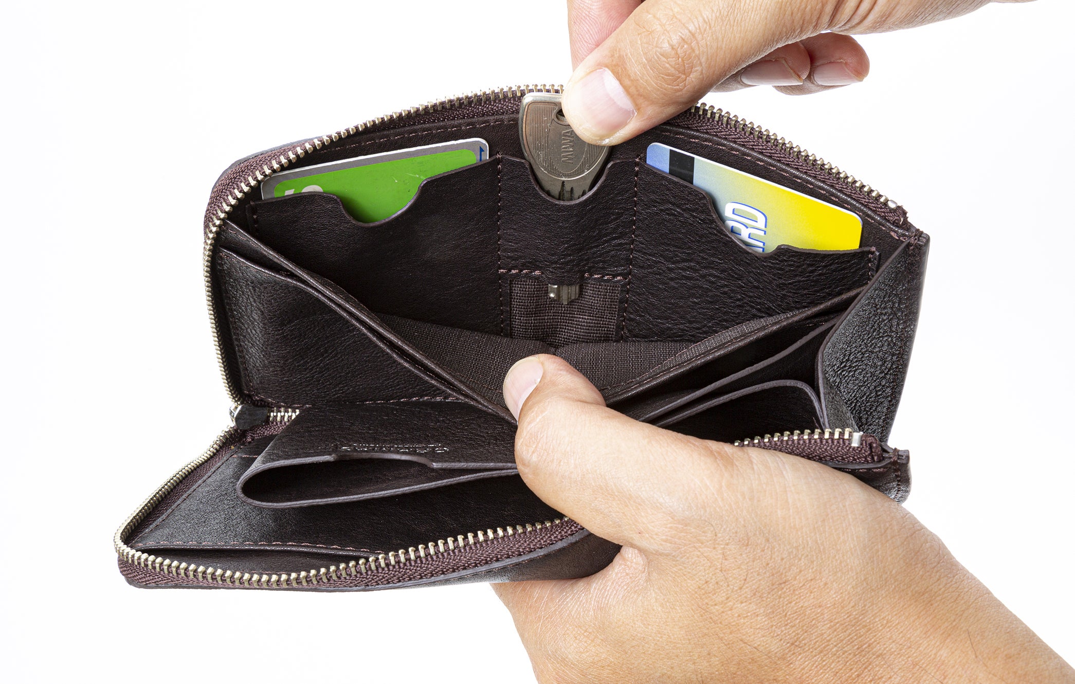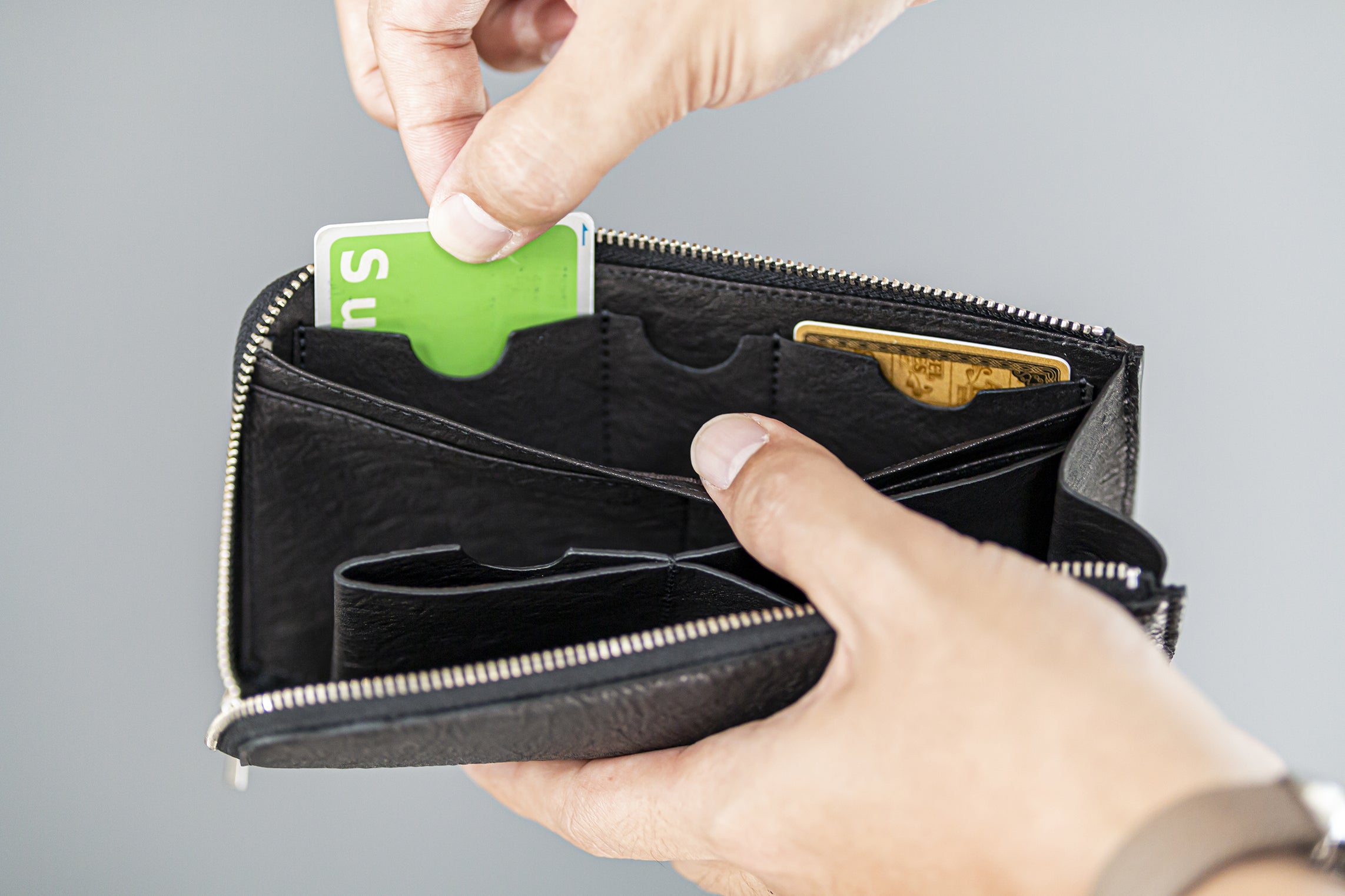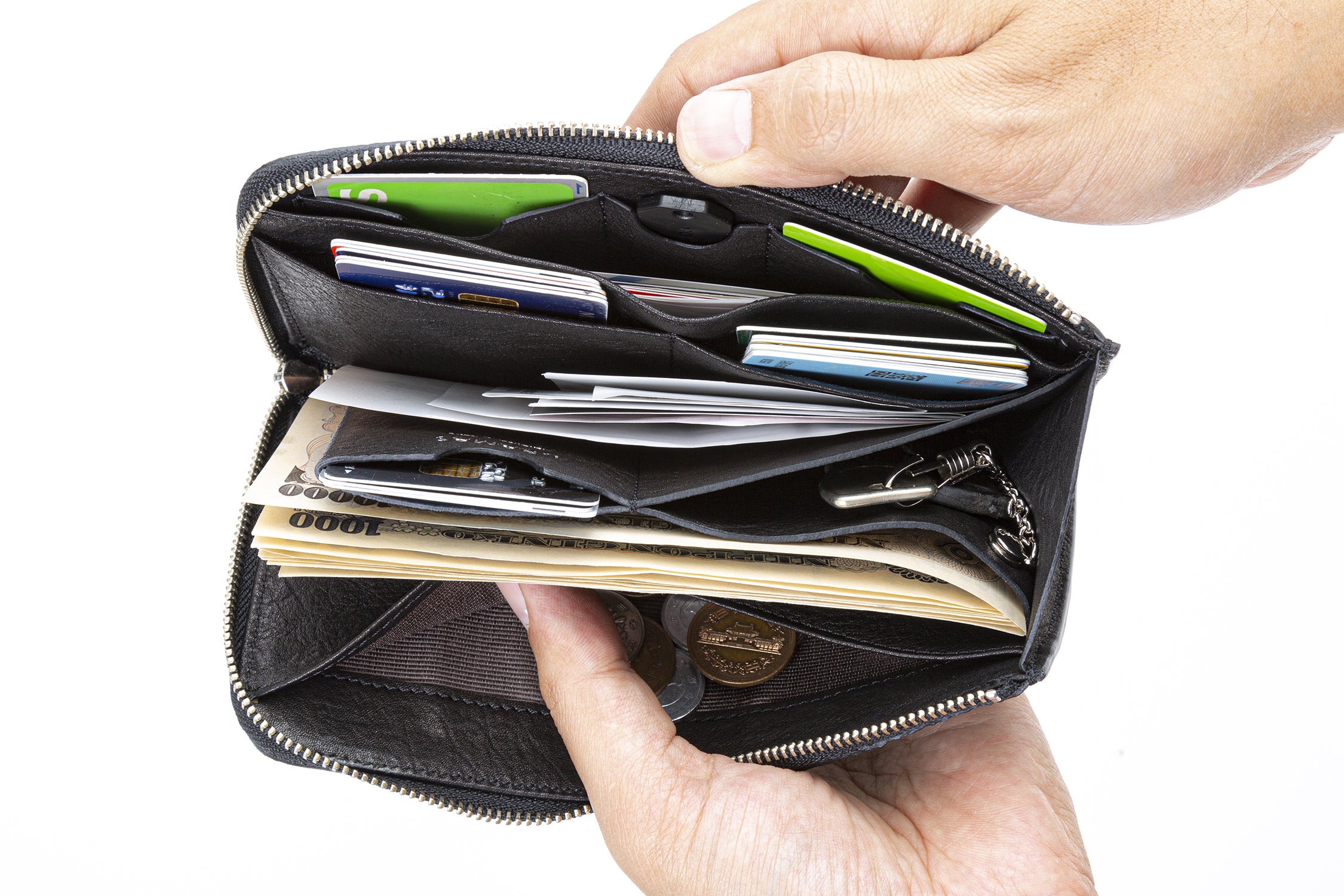同じようなファスナー長財布を3年程使用していましたが、クレジットカードと現金の出し入れがとてもスムーズになりました。あと、実際に使っているカードって意外と少ないんだなって思いましたね。