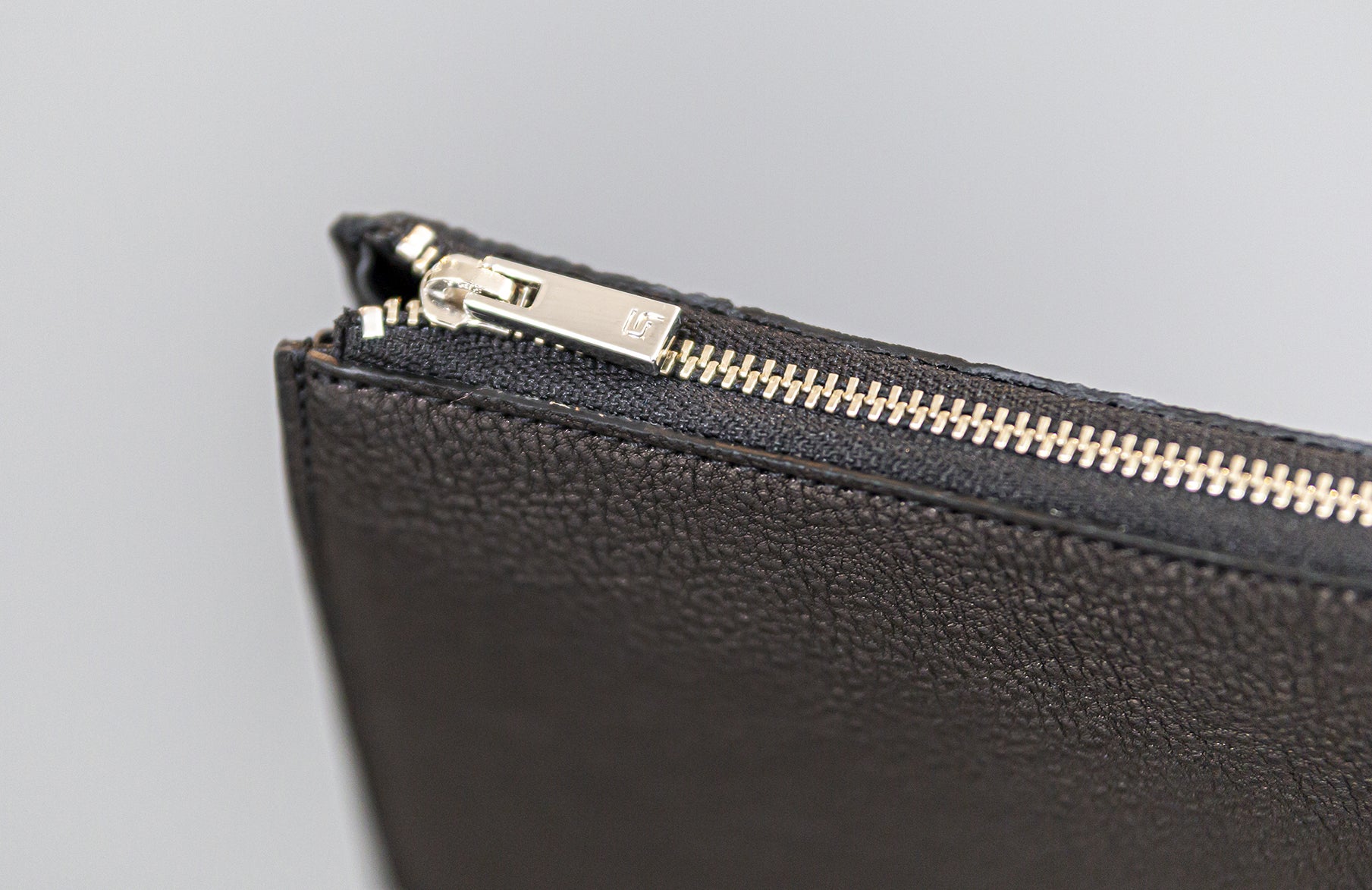 持ちやすさと耐久性にこだわった金属製の引き手は、革製のものとは異なり、経年劣化による破損や革のへたりによってファスナーが開けにくくなる心配もありません。