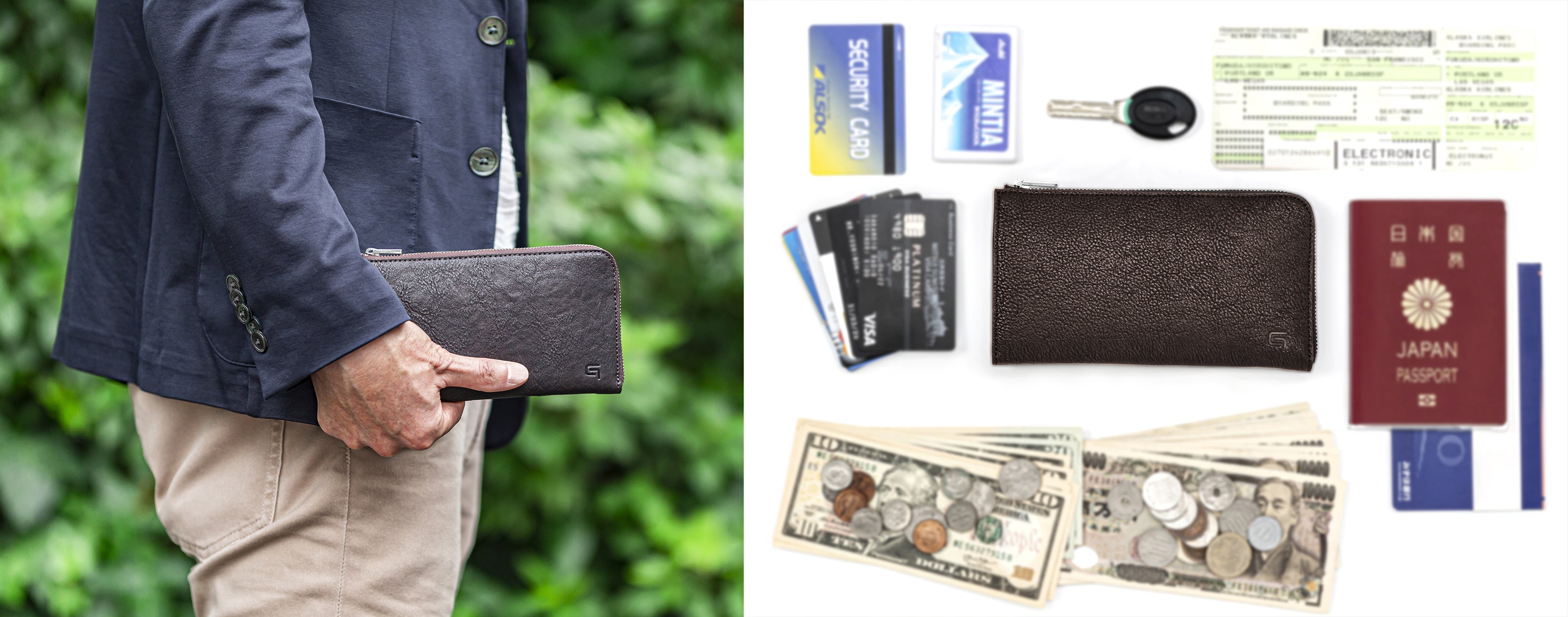 現金やカードの出し入れが楽。レジでもたつくことがなくなった。わりと大きめの鍵も入るし、銀行通帳やパスポートも入る。出張時にはチケットとパスポートを入れて機内に持ち込めそう。