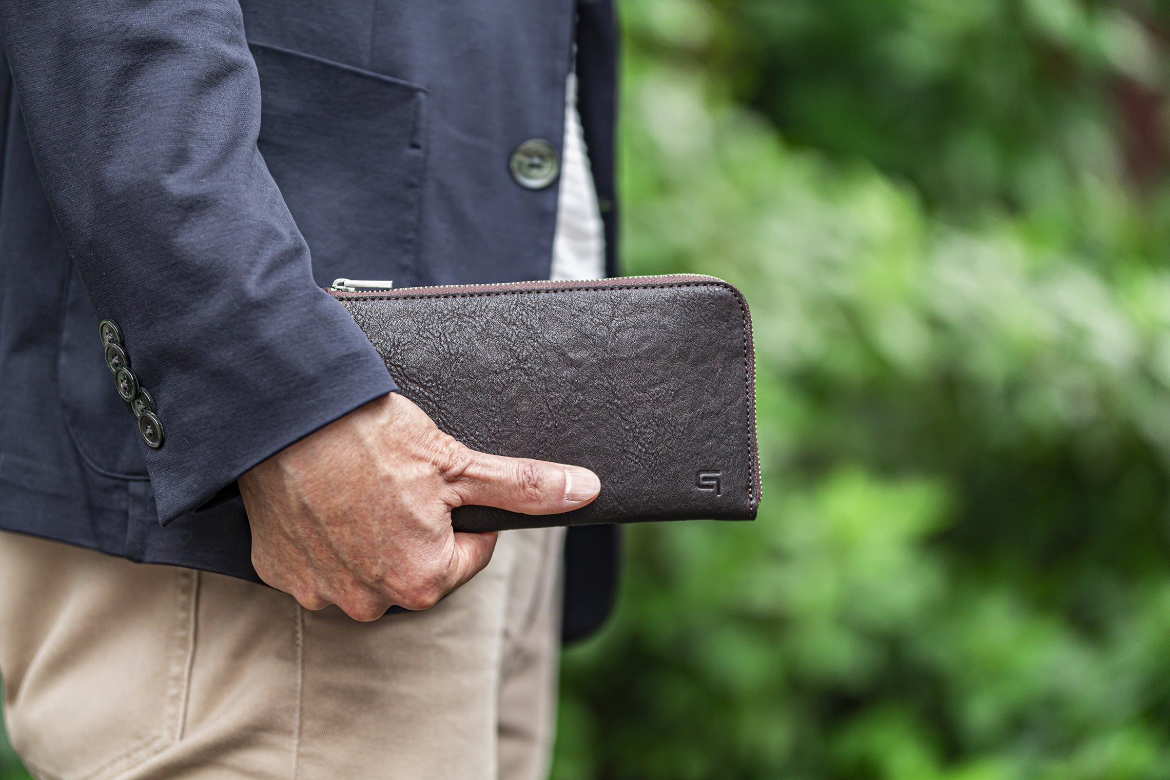 また、このずっと触っていたくなるような柔らかい質感は、全体を薄い作りにしつつも「革の質感が楽しめるように。」と、表とセンターポケット部分に適度な厚みを残してくれた職人さんの計らい。