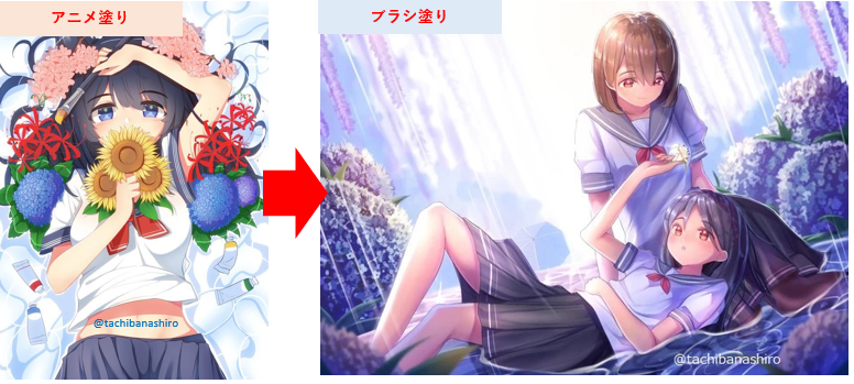 ※アニメ塗りよりも ブラシ塗りは、キャラクターの陰影がハッキリとします。