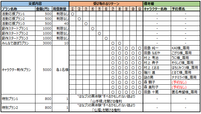 支援者様には以下の中からお選びいただき、キャラクター化を進めて参ります。