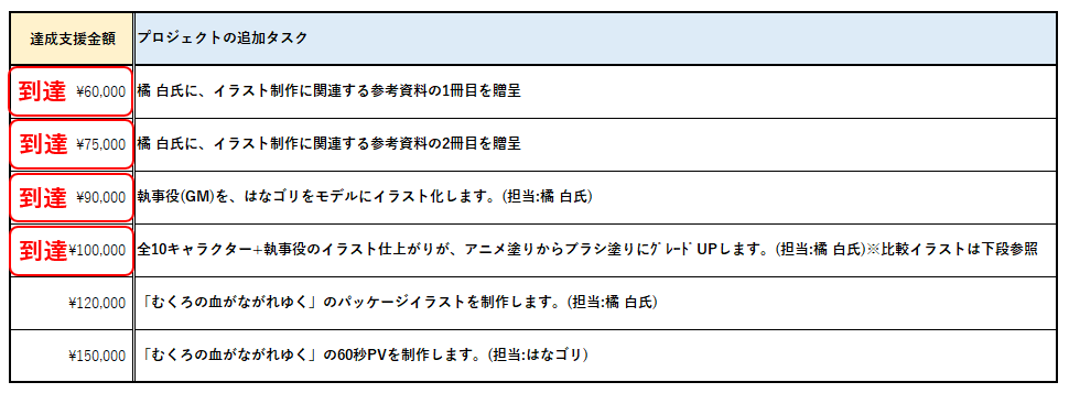 また、支援金額が目標を上回った場合、追加で以下のタスクを遂行いたします。