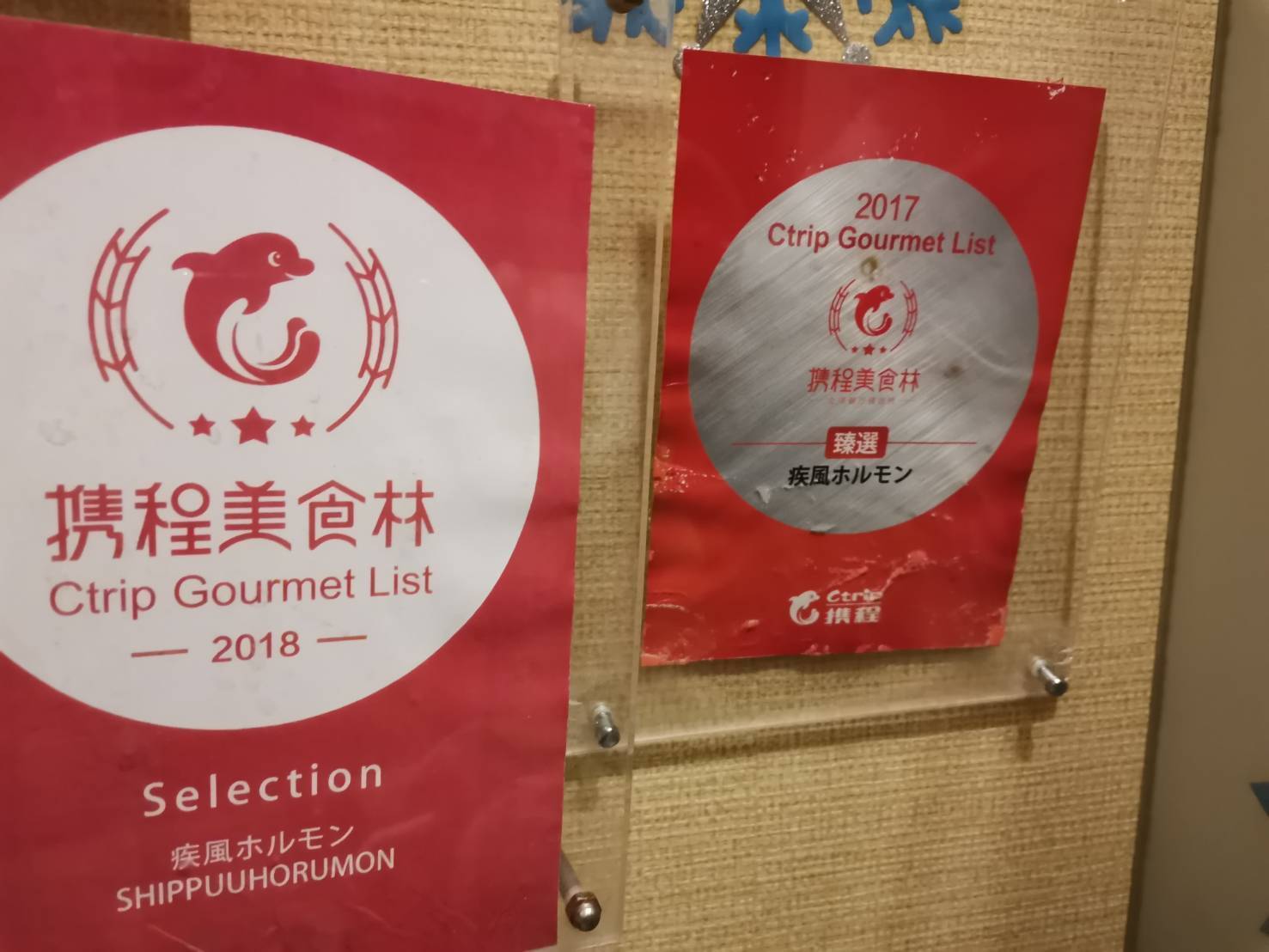 中国の最大王手ネット旅行会社Ctripより発表されました、シートリップ・グルメリスト(携程美食林)に2017年、2018年と二年連続で認定されました。