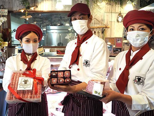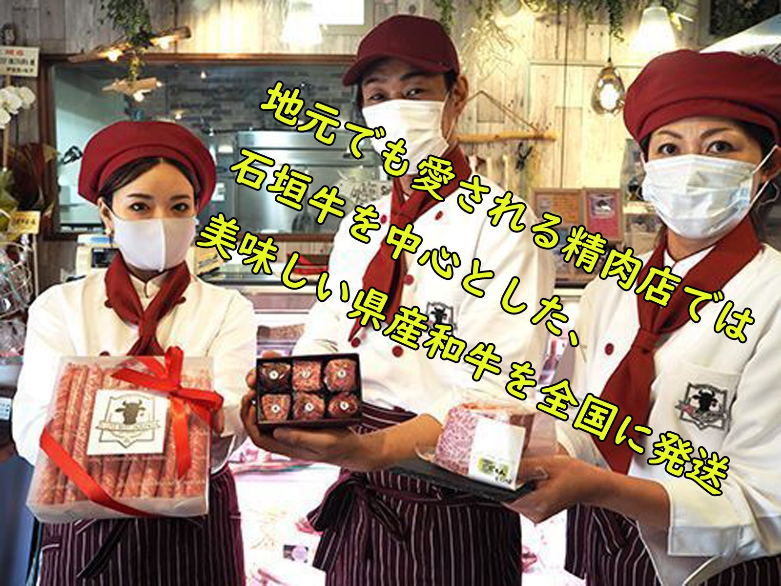 沖縄の精肉店のイメージを一新させるべく、また、身近に美味しいお肉を感じてもらえるように願いを込めてオープンしました。カフェやケーキ屋を思わせる店内。ステーキ、焼肉、しゃぶしゃぶ、塊肉などあらゆるお客様の求める声にお応えします。お肉の全国発送はもちろんの事、お祝い事の肉ケーキやオシャレな日替わり惣菜、自家製の加工肉、チーズの量り売り、ウォーキングワインセラーなど、宝石箱のようなお店となっております。