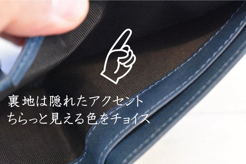 キャンプファイヤーモデルの証として裏地は全てネイビーの特別仕様!
