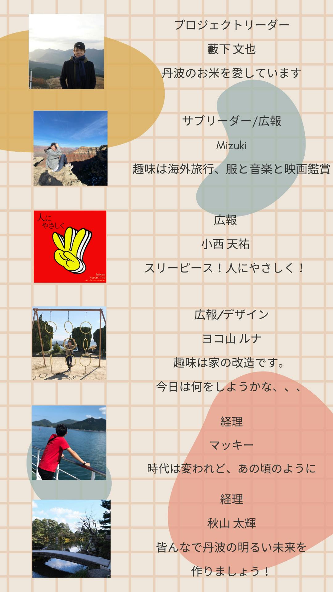 私たちは、丹波市出身の今年度社会人となる23歳世代の若者12人を中心に結成されたプロジェクトチームです。