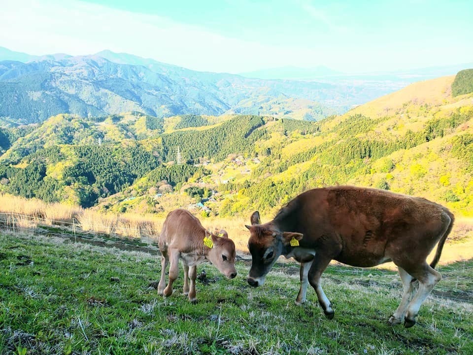 山地酪農とは読んで字のごとく山で牛を飼う酪農のことで、牛舎もない山の斜面にジャージー牛を1年を通して完全放牧をしています。