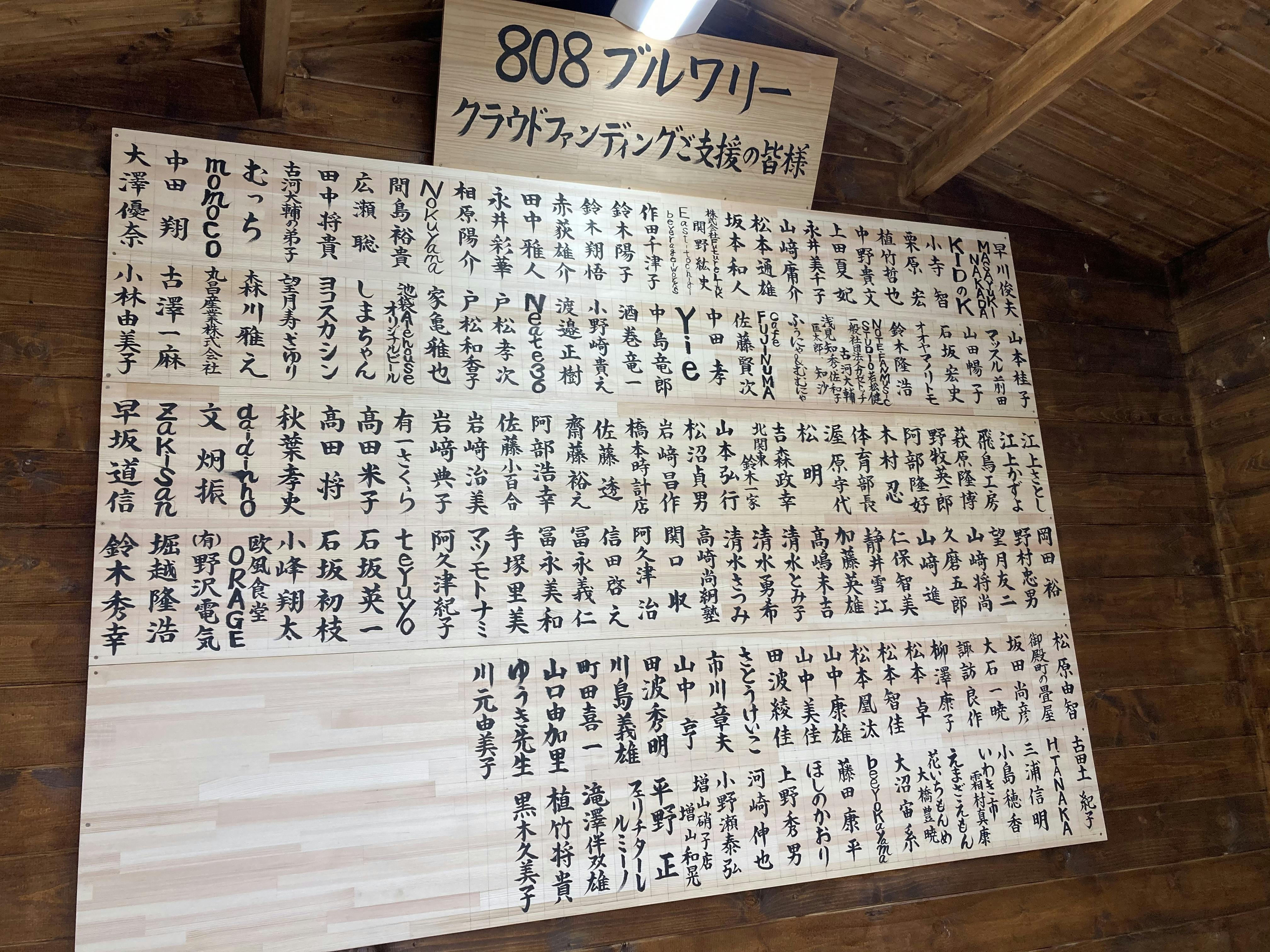 2021/02/15 14:53808ブルワリー御支援有難うございました。先日お伝えさせて頂いた通り、クラフトビールの醸造はまだ先になりますが、本日御支援頂いた皆様のお名前を醸造所横にある直売所の室内壁に貼らさせて頂きました。醸造所の中に貼ろうと考えていたのですが、保健所から拭き取れる壁にするように指導があり、致し方なく醸造所隣の直売所に貼らさせて頂きました。醸造所は通常閉めっぱなしですが直売所は閉まっていても外から見られるますのでお近くにお越しの際はご覧になって下さい。クラフトビールは今しばらくお待ち頂けますよう宜しくお願い申し上げます。 もっと見る