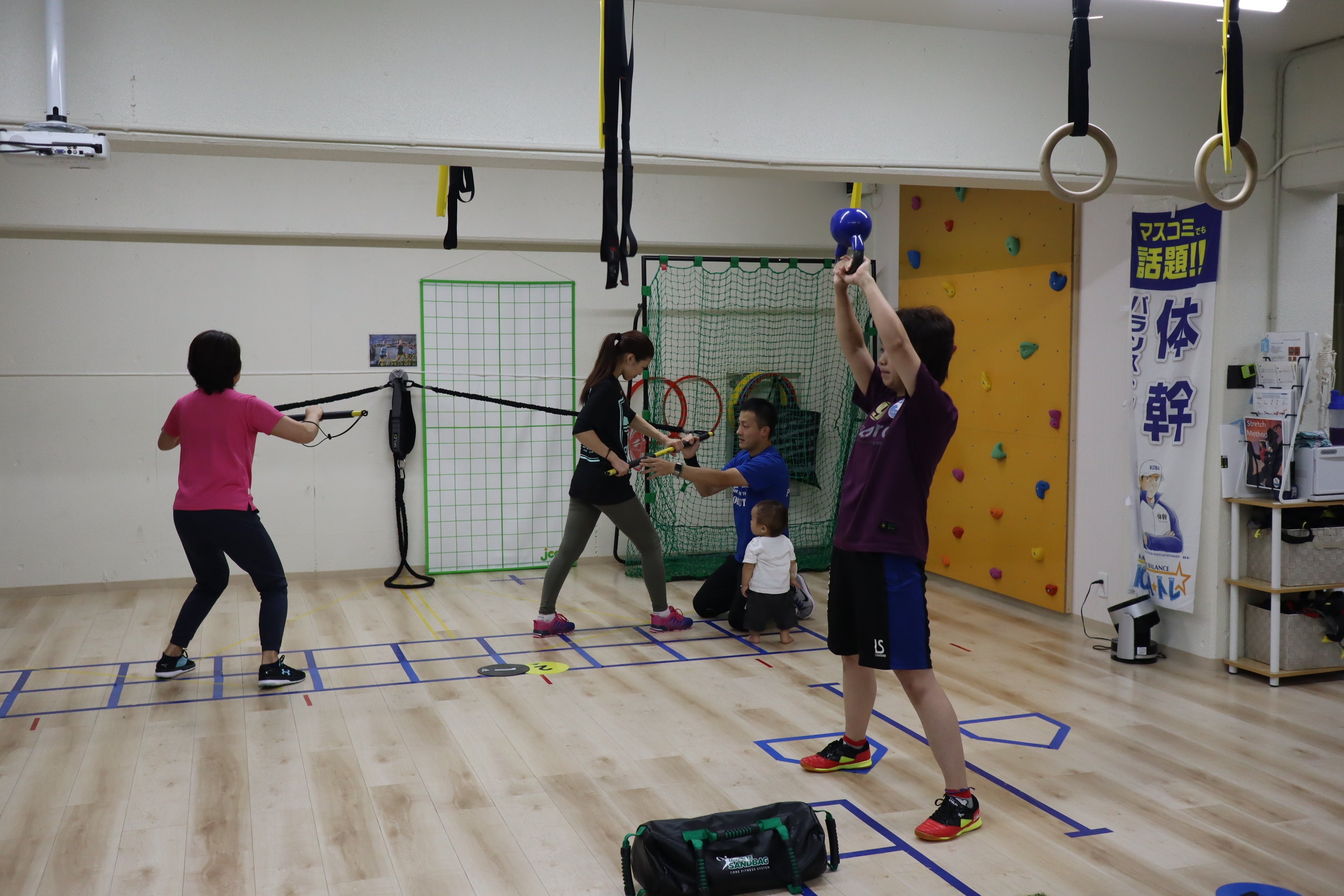 幼児クラス・小学生クラスに導入し、子供達に安心して新しい動きに挑戦してもらえる環境を整えます。