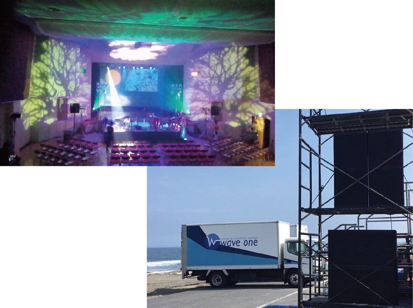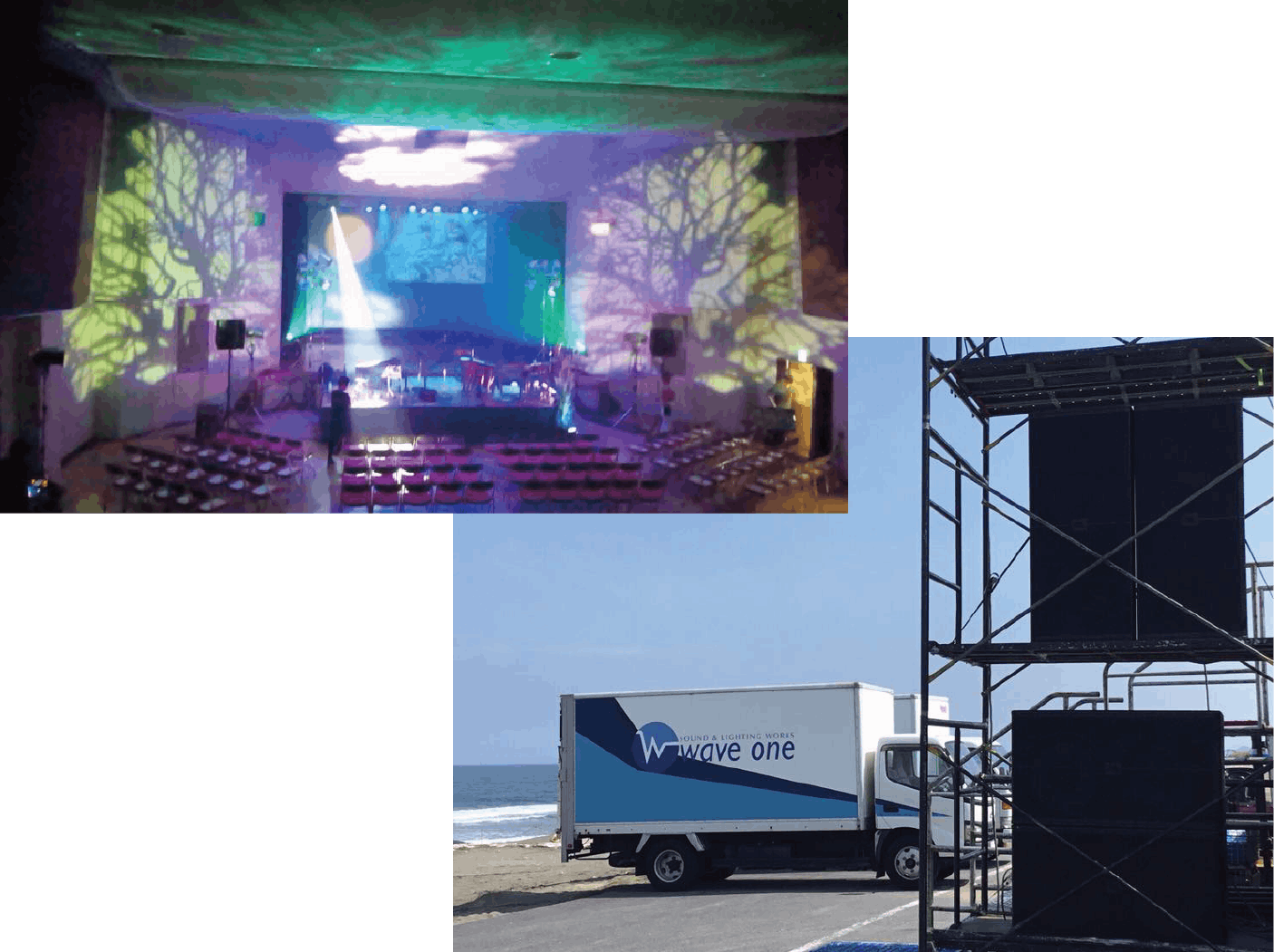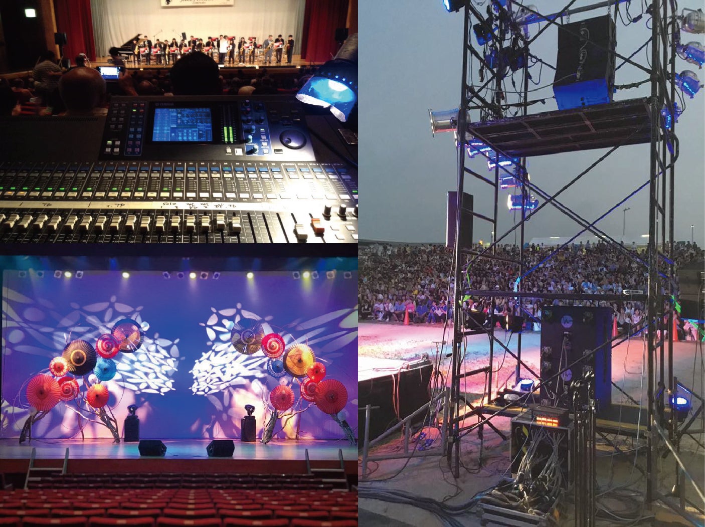 音楽やダンスのライブや各種コンサート、地域イベントや文化事業の他、自治体様広報イベントや企業様イベント・ライトアップなど千葉県内はもとより東京都内等の様々なイベントの音響照明業務を担当しております。