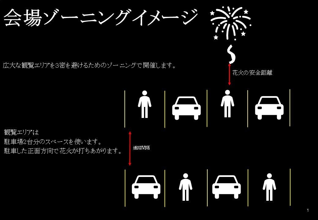 ではそんな素晴らしい力を持つ花火を数多く打ち上げる花火大会はなぜ中止になってきているのか。それは新型コロナウイルス感染拡大防止のため、不要不急の外出は禁止。密閉空間、密集場所、密接場面の3密を避けなければならない。そのような現状では、通常の花火大会はまさに避けるべきものと言えます。3密を避けつつ、花火を打ち上げるためには、新しい花火大会の形が必要になります。