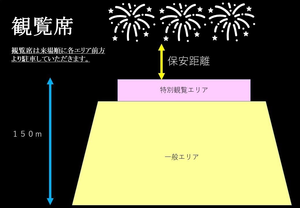 また、花火大会に来場する人を限られた人数とすることで、3密を避けるよう工夫した指定席のみで行うことができ、3密を避けた会場設営ができます。