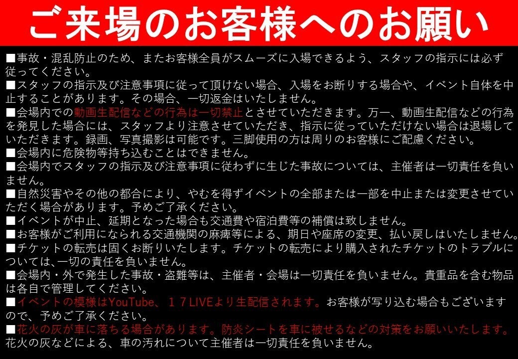 来場チケット御購入の方に詳細な3密回避方法、入場方法をご案内いたします。