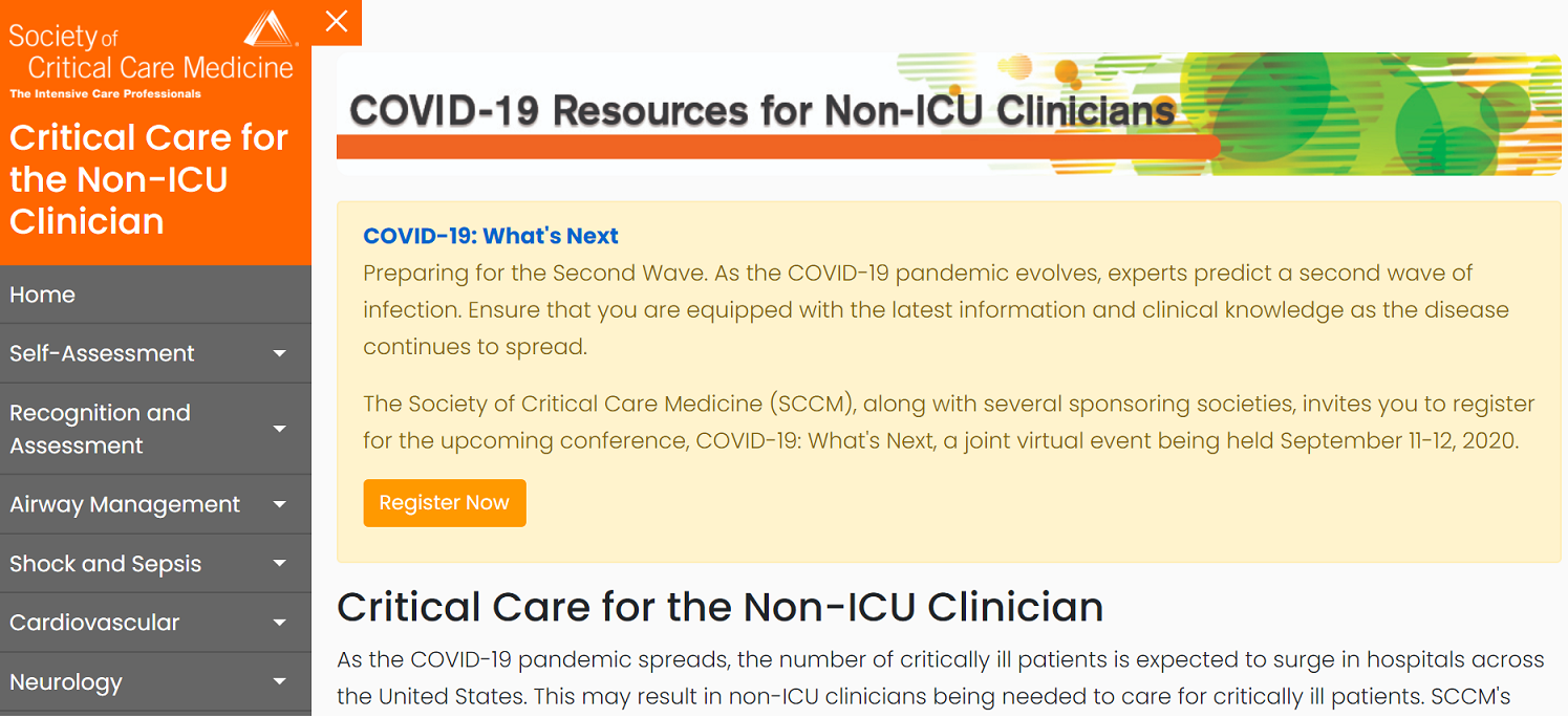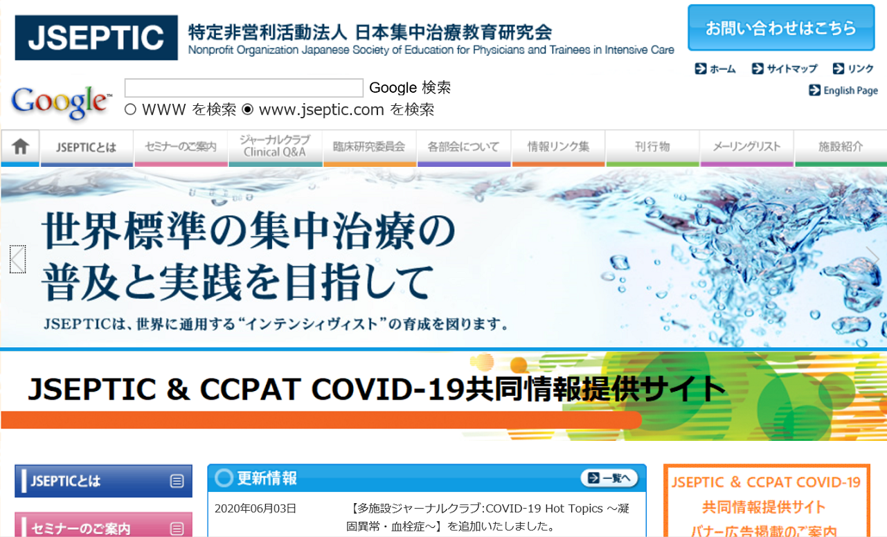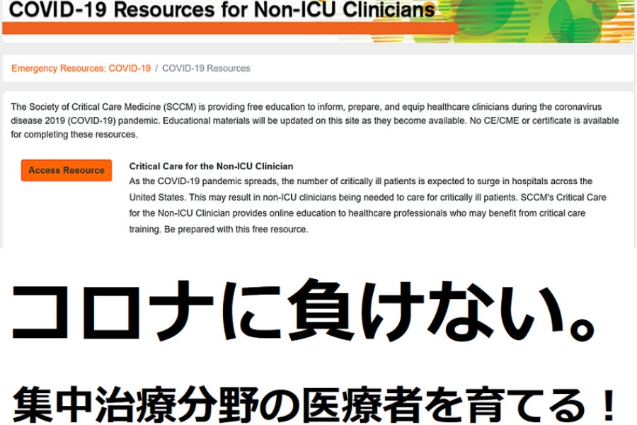 新型コロナウイルス(COVID-19)のパンデミックが拡大する中で、日本国内の医療施設でも一時は重症患者数が急増し、オーバーシュート直前の状況にまで至りました。幸い、第1波と呼ばれる状況を脱しましたが、緊急事態宣言解除後、再び全国的な感染拡大が始まっており、重症患者も再び増加していくことが懸念されております。第1波では重症患者をケアする集中治療室(ICU)の病床の不足が指摘され、行政からの要請により多くの医療施設でICU病床の拡大を行いました。しかし、ICUとは場所だけを確保すればよいものではありません。ICUでの重症患者管理に慣れた医療スタッフは全国的に不足しており、またその教育を行うことができる人材が不在の医療機関も多いのが実情です。そこで、集中治療の教育・普及を推進する2つの団体、特定非営利活動法人 日本集中治療教育研究会(JSEPTIC)及び一般社団法人 集中治療医療安全協議会(CCPAT)は、第1波の拡大に先駆けてICUでの重症患者ケアにICU以外の臨床医や医療スタッフの協力が不可欠となる場合に備え、普段ICUに従事していない、重症患者管理に慣れていない医療者をサポートするため、協同でCOVID-19情報提供サイトを立ち上げました。とくに人工呼吸器管理については、世界標準的知識なくしては対応が困難であり、知識のない非専門家が対応してしまうと何の兆候もなく死亡率を高めてしまうことが知られています。本サイトのコンテンツを通じて自己学習することにより、普段、集中治療に慣れていない医療者であっても、安全に、効率的に、重症患者に対応できるようになります。