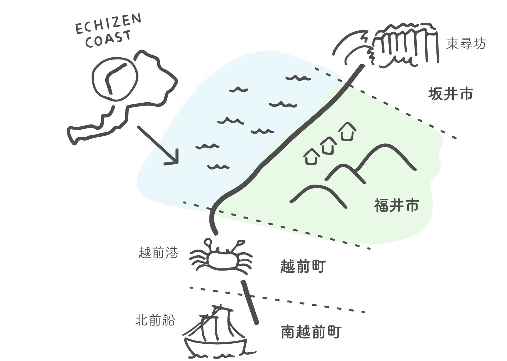 その中でも、ぼくたちが暮らしているのは、福井市西部の海岸線。福井駅からは45分ほどの場所にあります。
