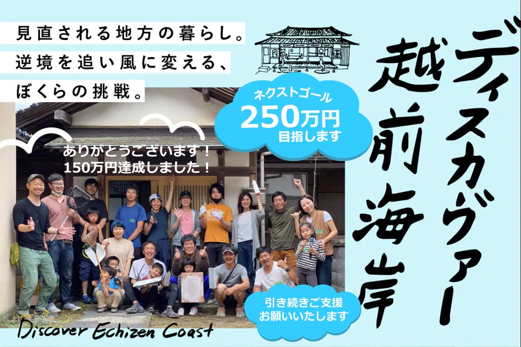 150万円という目標を達成したことをうけて、越前海岸盛り上げ隊では、【250万円】をネクストゴールに設定し、「はりいしゃ」の活用に向けたさらなる整備を進めます!
