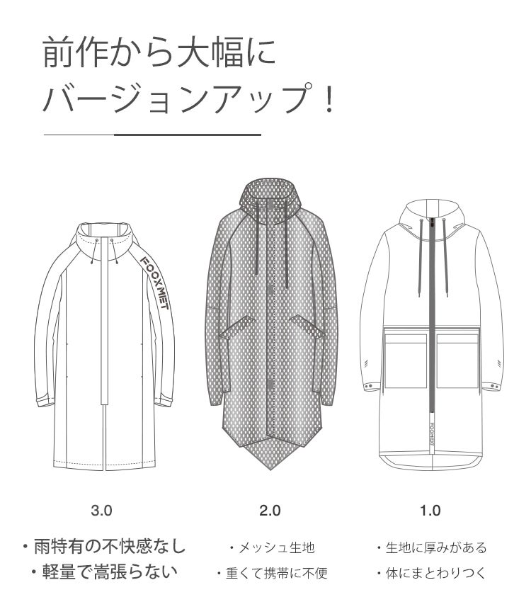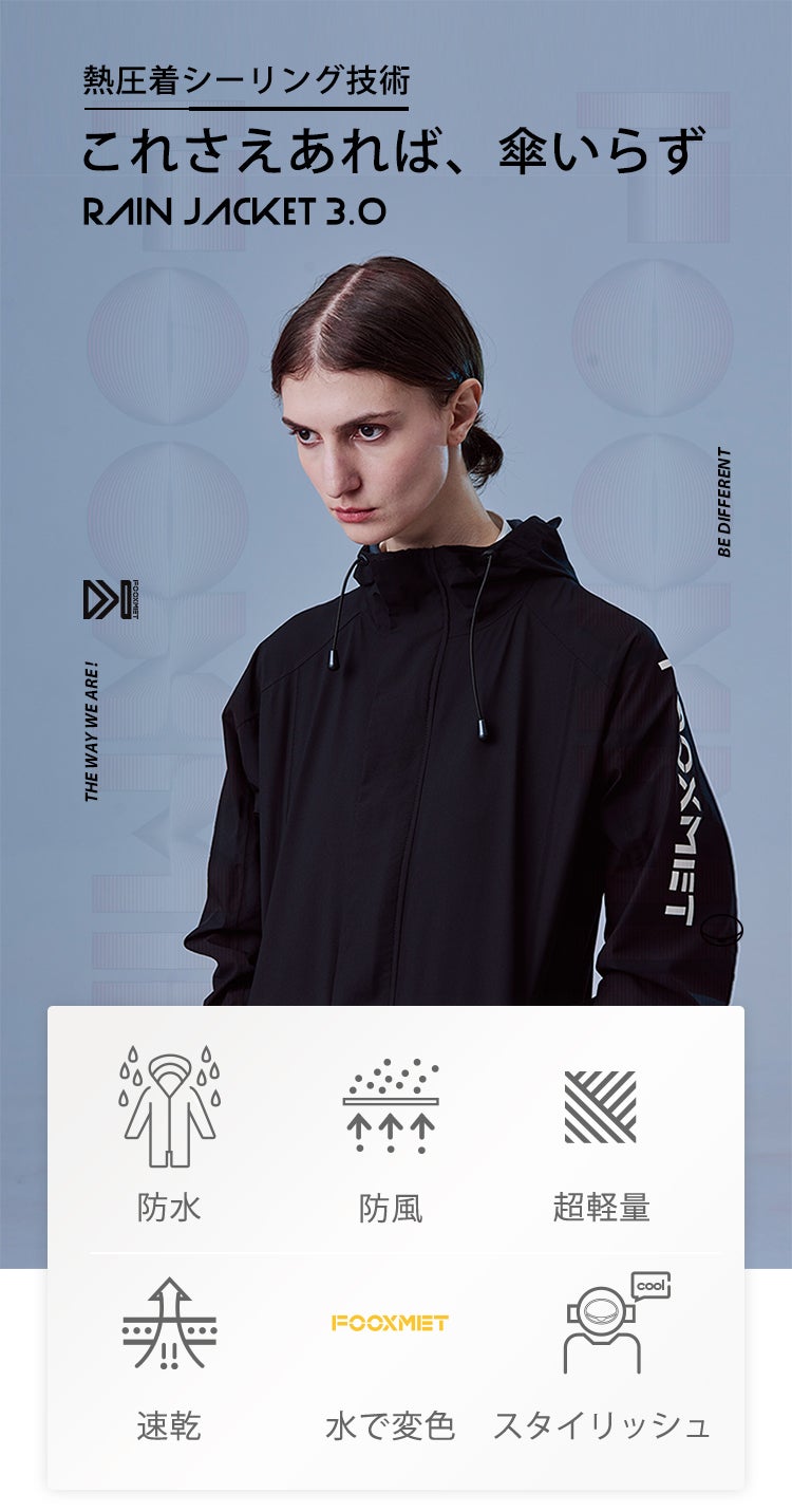 2019年冬、最強の発熱ジャケット「Warm Geek」で総額1億円以上を賜ったFOOXMET社から、梅雨・台風など雨の時期にむけた最強のレインジャケット「RAIN JACKET 3.0」が誕生!