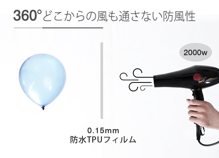 第2層はわずか0.15mmの防水TPUフィルム。長時間の大雨に匹敵する14000mmの耐圧性を誇る上に、防風性も徹底。2000Wのドライヤー風もとおしません。