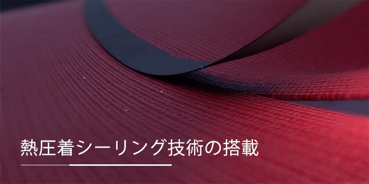 そこで、糸の代わりに防水シールを使った熱圧着シーリング技術を搭載。雨水が染みこむ隙間を作らない縫製方法で、完ぺきな防水効果を実現させました。