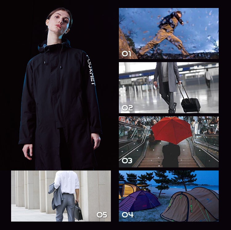 雨の日はもちろん、天候に囚われず普段着としても着用でき、使用シーンはさまざま。レインコートの概念を覆す、まさに最強のレインジャケット!